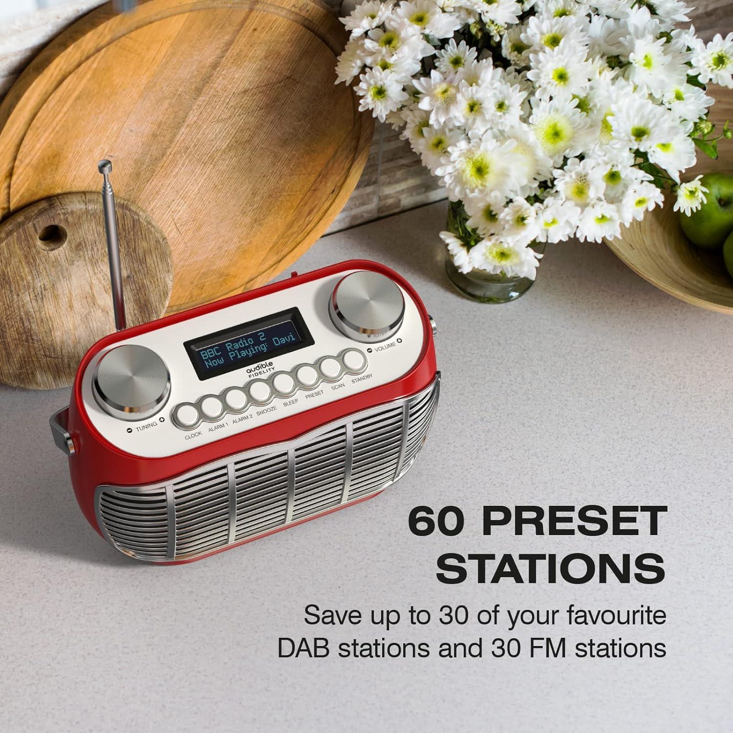 La radio DAB Detroit d'Audible Fidelity combine un design vintage intemporel de ville automobile avec les toutes dernières performances de la technologie de radio numérique DAB/DAB+/FM, pour un excellent ajout aux côtés de la cuisine ou aux tables de chambre. Le design accessible abrite de gros boutons et un écran LCD clair et facile à lire avec les informations sur la station.