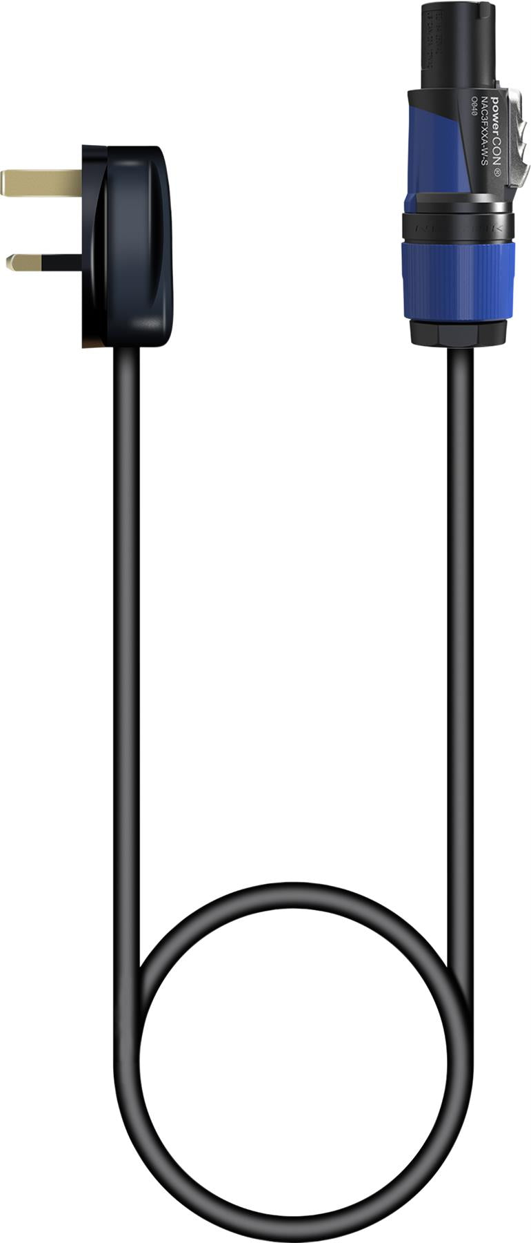 UK mains plug to powercon cable designed for use with modern professional lighting and amplifier units fitted with powercon connectors. Fitted with 13 Amp mains plug, Neutrik powercon connector NAC3FXXA and H05VV-F 3G 1.5mm. 3 metre length