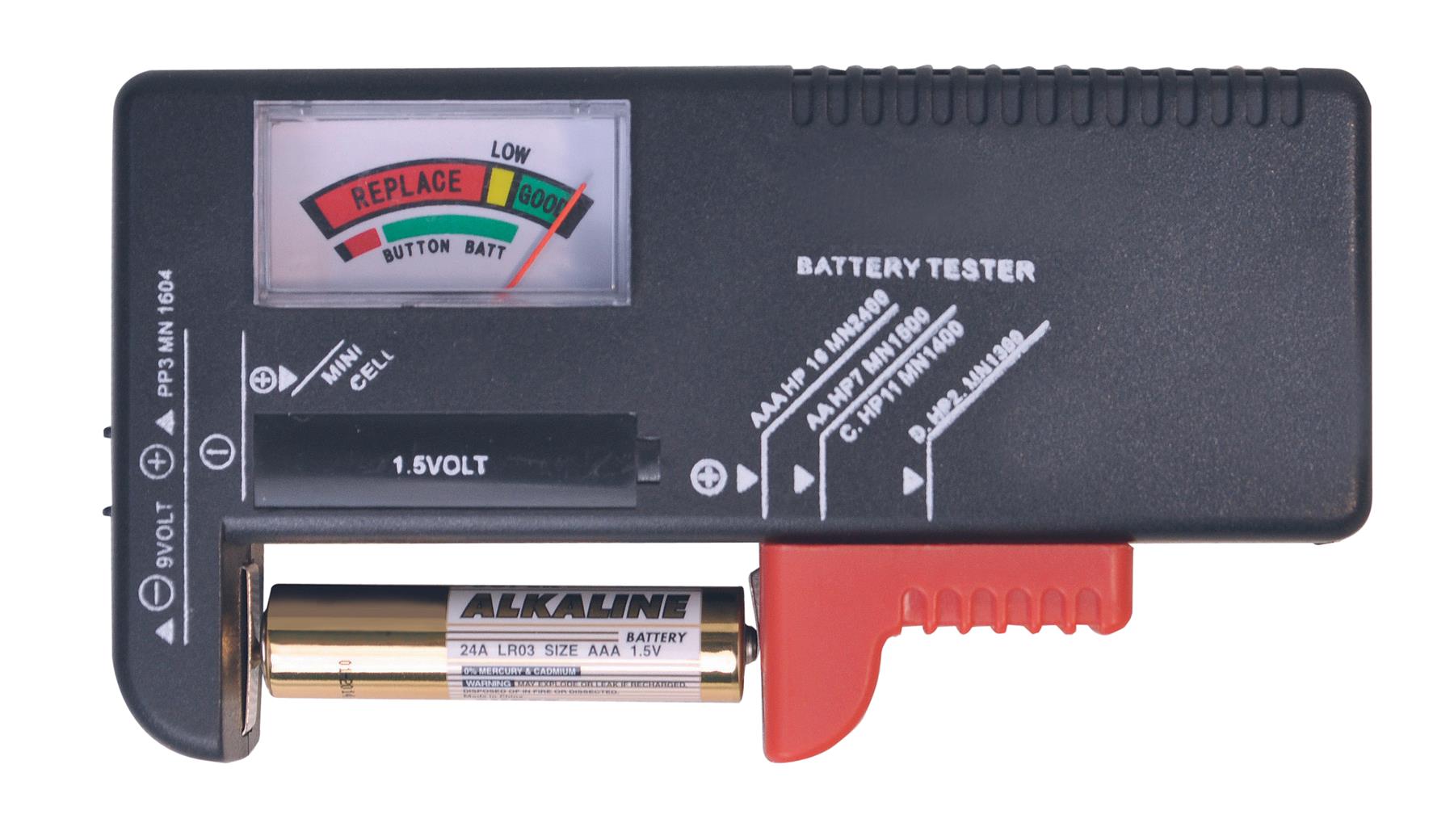 Un testeur de batterie universel capable de tester la plupart des types de piles sèches populaires dans des conditions de charge réelles. Le compteur facile à lire indique l’état de la batterie en un coup d’œil. Teste les piles bouton PP3 (9 V), AAA, AA, C, D, 4SR44 (6 V), 1,5 V. Fonctionnement simple et mouvement coulissant pour s'adapter à différentes tailles de batterie. Livré sous blister