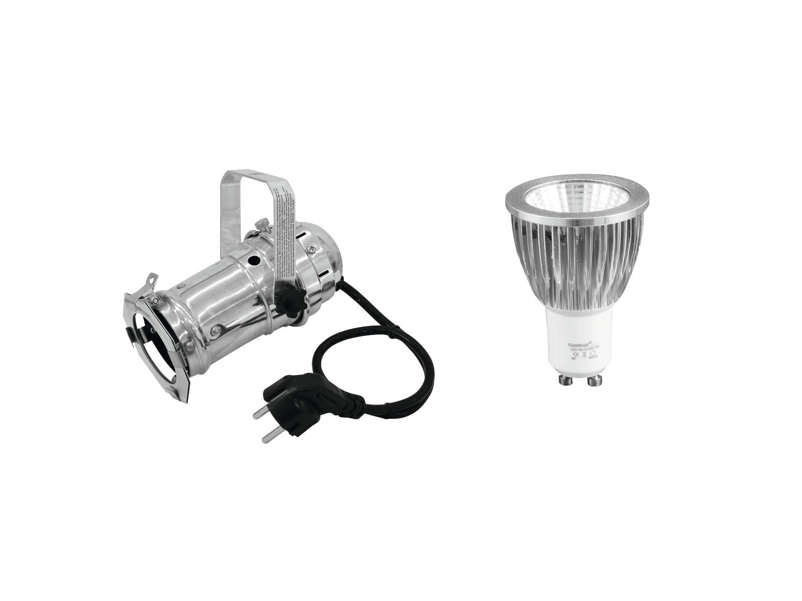 PAR-16 housing with GU-10 socket including special lamp for show effect lighting