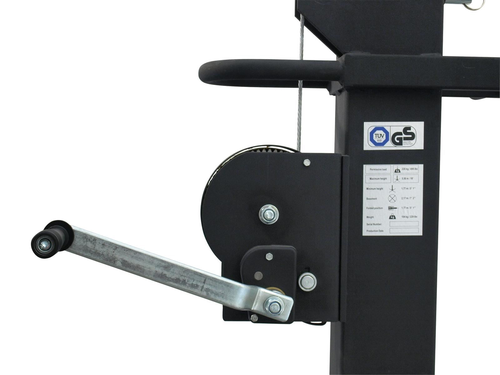 La série EUROLITE STC sont des élévateurs de fermes fabriqués sous une surveillance stricte du TUV. Ces ascenseurs se vantent d'une haute qualité, d'une robustesse extraordinaire, d'une polyvalence maximale et d'une grande stabilité. La production est contrôlée par le T?VS?D allemand, ce qui signifie qu'ils répondent aux normes de sécurité les plus élevées. La marque GS signale à l'acheteur, au client ou au consommateur que le produit choisi ainsi que le manuel d'utilisation et la production (processus) ont été testés par un organisme agréé tel que T?VS?D, la priorité étant donnée aux aspects de sécurité. Entre-temps, la marque allemande GS est reconnue comme l'une des marques essentielles en matière de sécurité des produits.