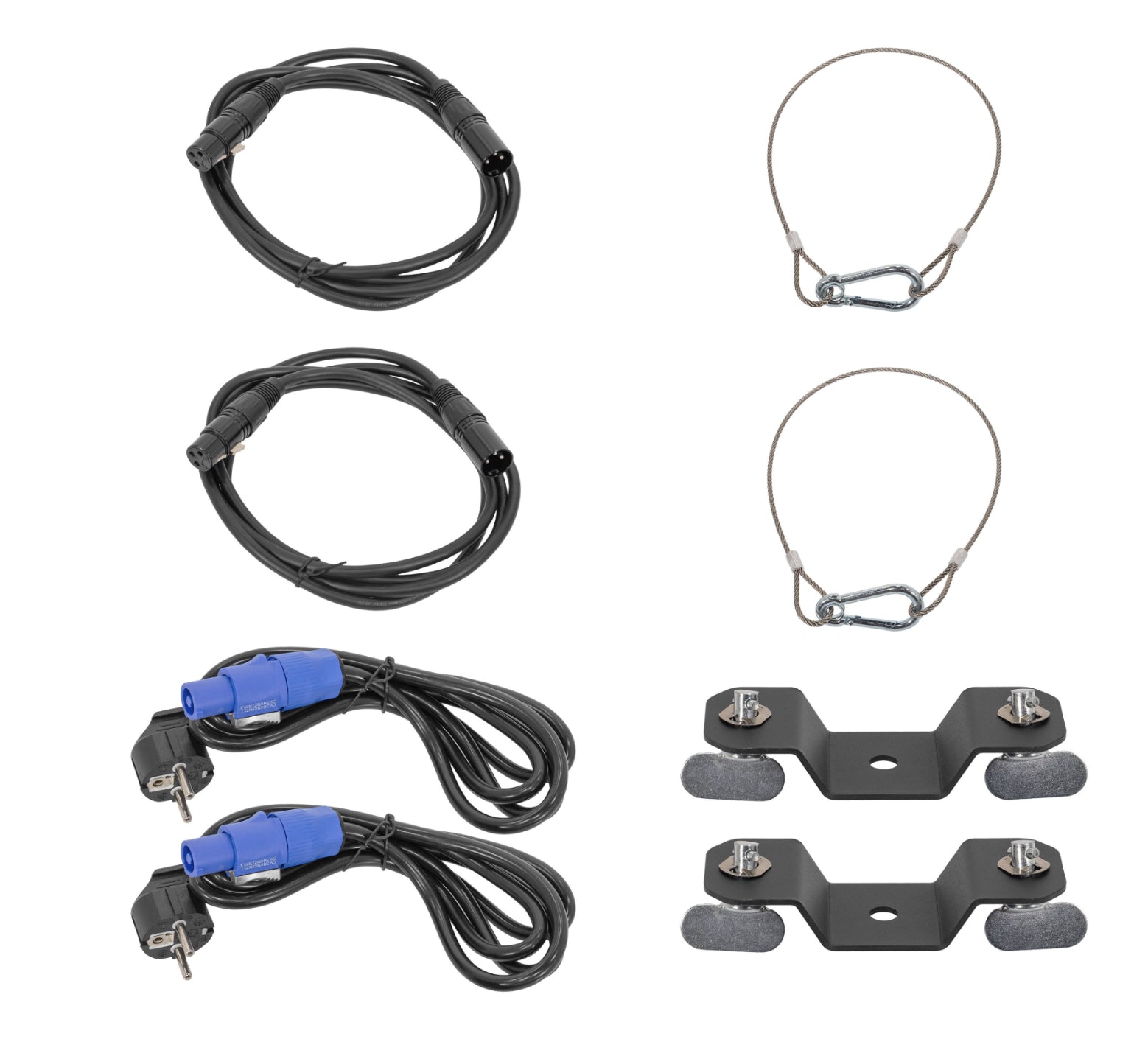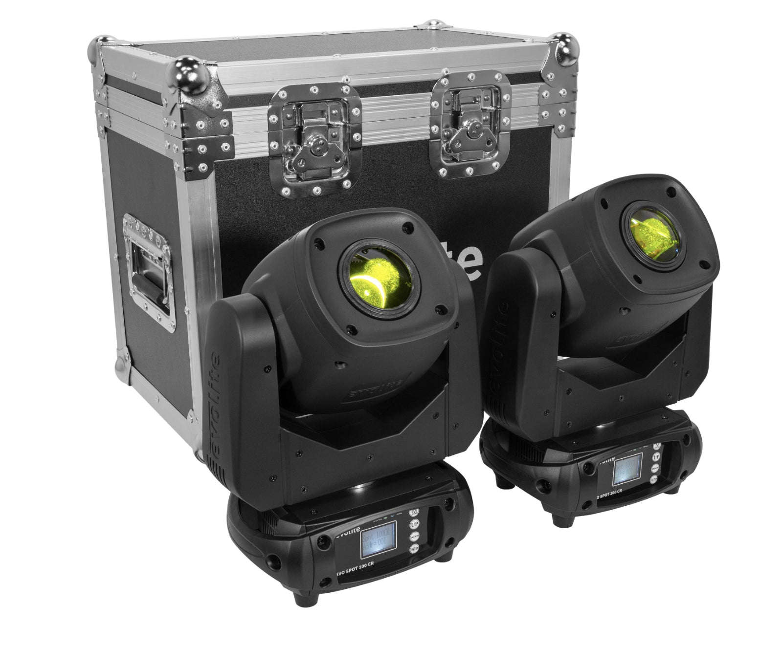 With low power consumption (120W per unit) and quiet operation (55 dB), these fixtures are suitable for a variety of professional applications, from live shows to fixed installations. The Evolite Evo Spot 100-CR Set combines performance, durability, and convenience in a compact, ready-to-use package.