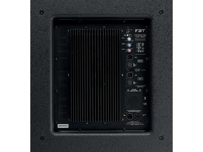 Caisson de basses actif traité - 2 500 W RMS - 140 dB SPLPour les espaces plus grands, le VHA118SA empilé au sol est un caisson de basses exceptionnellement puissant et polyvalent qui établit une nouvelle norme en matière de rapport SPL/taille. Composé d'un seul woofer 18 B&C, le caisson bass reflex en contreplaqué de bouleau déploie à nouveau un flux d'air laminaire pour des performances raffinées, tandis que son module amplificateur de classe D de 2 500 W offre une sélection de six algorithmes prédéfinis entièrement réécrits. La conception du VHA118SA a a produit un module bas de gamme unique capable de générer des niveaux de SPL extrêmement élevés pendant des périodes prolongées. À l'aide de simulations par éléments finis BEM, FBT a optimisé le volume de charge des woofers, tandis qu'une étude minutieuse de la grille et du tissu de protection des assemblages a minimisé l'impédance acoustique pour une nette amélioration des performances par rapport aux modèles précédents. L'ajout du VHA118SA étend la réponse en fréquence globale du système à 30 Hz, tandis que le sub peut prendre en charge des configurations entièrement empilées au sol grâce à un matériel de montage intégré spécial.