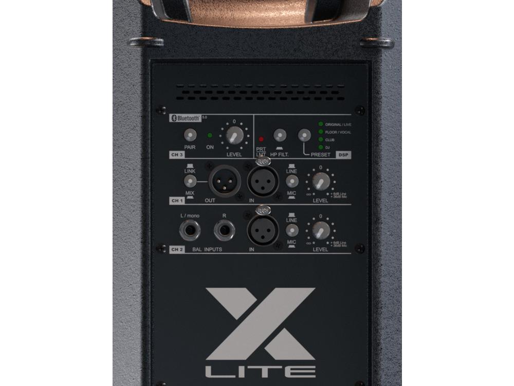 L'enceinte active bi-amplifiée FBT XLITE 112A est dotée d'un ampli basse fréquence de 1200 W et d'un ampli haute fréquence de 300 W. Le panneau de commande comprend un mélangeur à trois canaux avec deux entrées micro-ligne, une entrée stéréo et un canal dédié pour Bluetooth 5.0 ; deux entrées XLR, entrée stéréo, sortie XLR avec sélecteur ch1 ou mix link, filtre HP, deux sélecteurs de ligne micro, sélecteur de préréglage DSP, Bluetooth 5.0 avec LED d'appairage. 4 points de montage M10 intégrés dans l'armoire ainsi que les supports de montage en option permettent à l'enceinte FBT XLITE 112A d'être montée en surface sur les murs ou les plafonds.