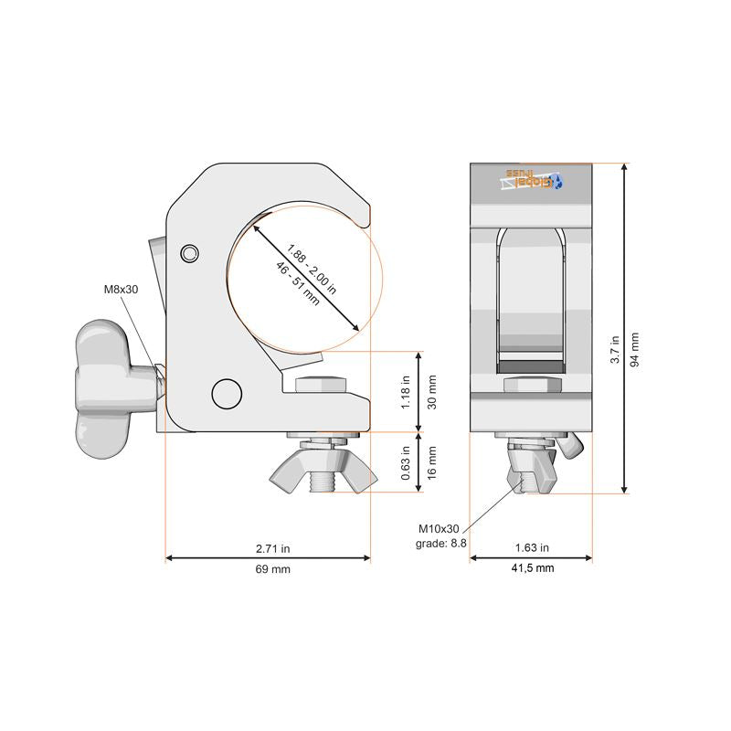Ne convient pas pour une utilisation avec des supports oméga moulés sous pression. Épaisseur maximale de l'empiècement/du support 4 mm