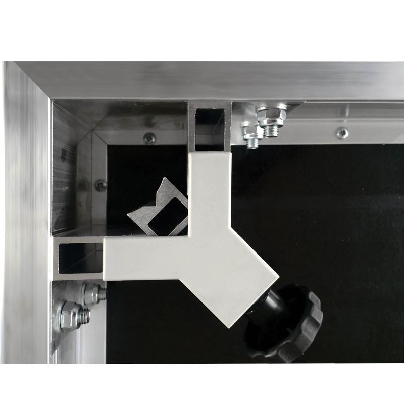 The GT Stage Deck platform is a mobile stage system for indoor and outdoor use. This range is ideal for concerts, theatres, schools, public halls, exhibitions, fashion shows or wherever a stage is needed. The aluminium profile offers superior flexibility and compatibility with many other manufacturers. Due to the external notch, additional parts such as handrails can be attached. Furthermore platforms can be connected via the notches whilst the ‘Deck Leveller’ helps to align them at the same height. The connection for the attachment of legs has been specially designed for both round and square versions with a maximum dimension of 60 x 60mm.