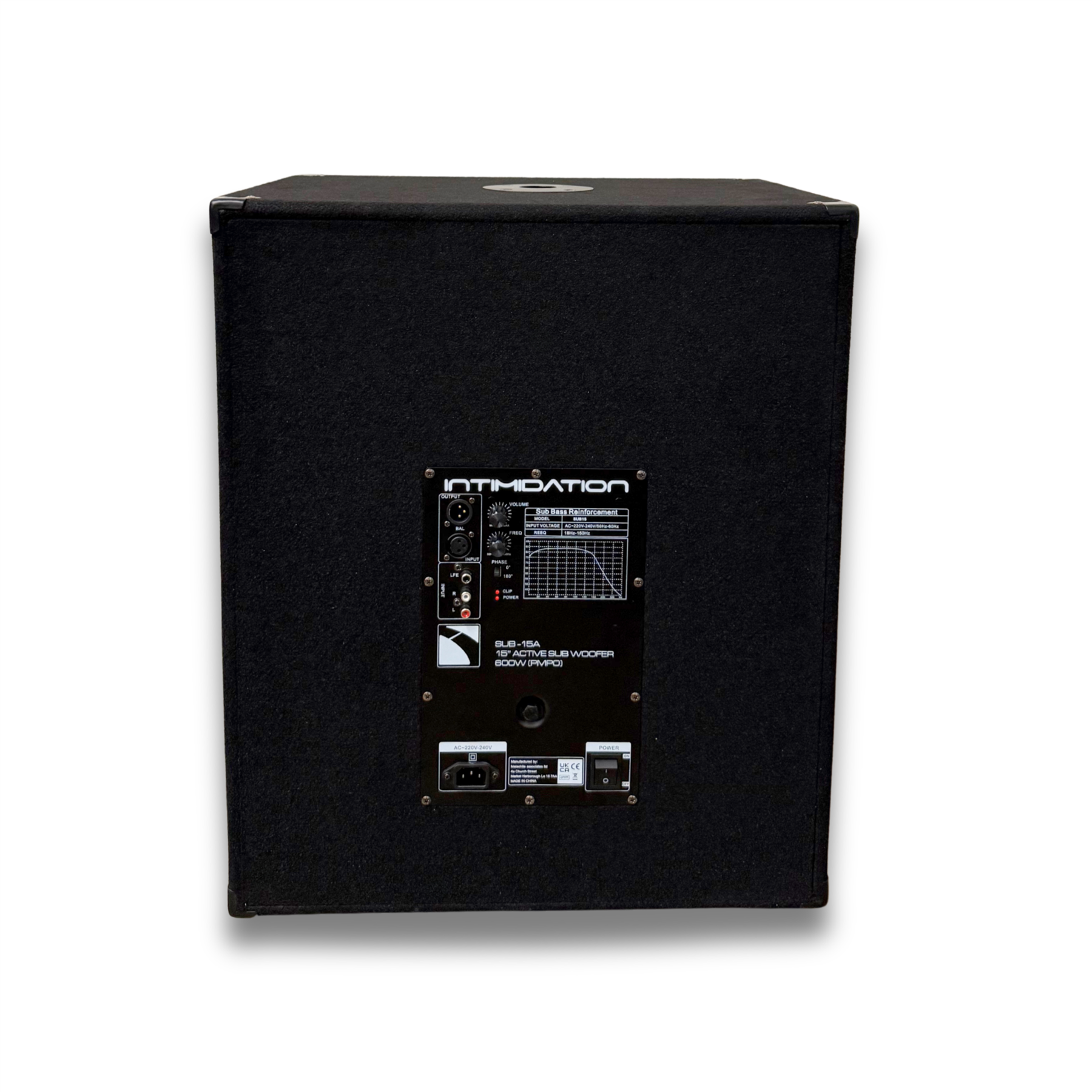 Subwoofers (x2): Intimidation Active 15" Bass Bin – 1000W