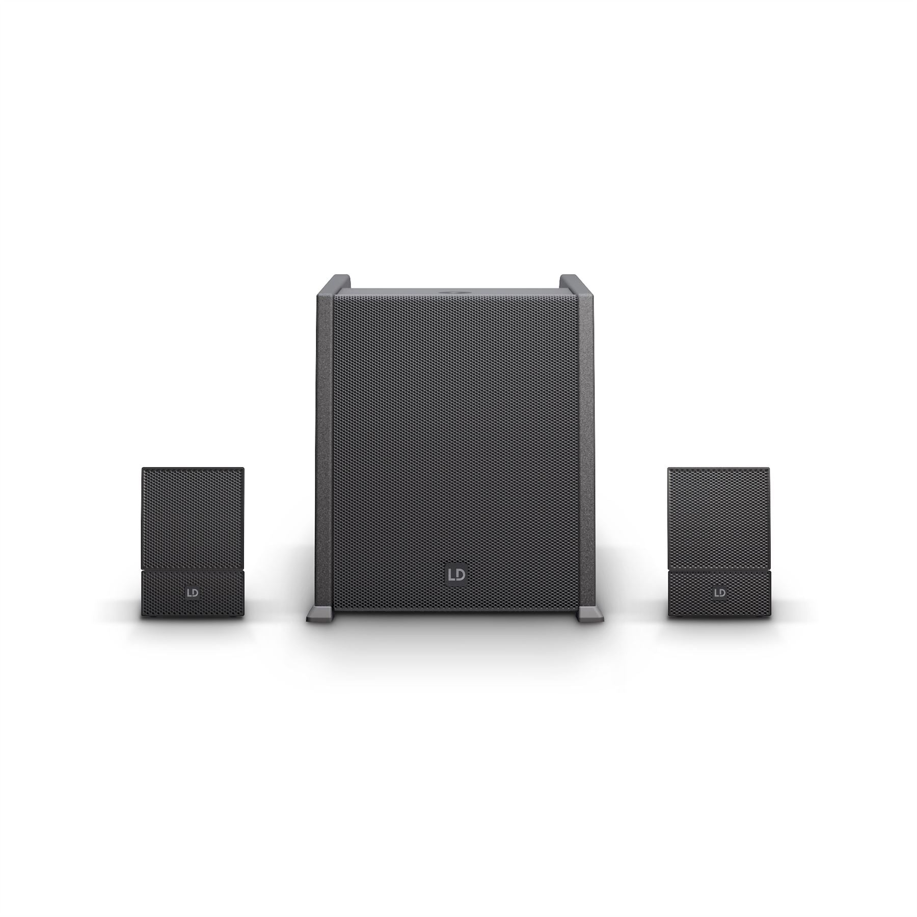 Les deux satellites sont exploités via des adaptateurs SmartLinkA. Les éléments, mesurant seulement 12 x 12 cm, sont équipés de la technologie WaveAheadA propre à LD System ; un pilote de 4" et trois pilotes de 1" offrent une lecture cohérente et extrêmement détaillée avec une pression et une dynamique élevées.