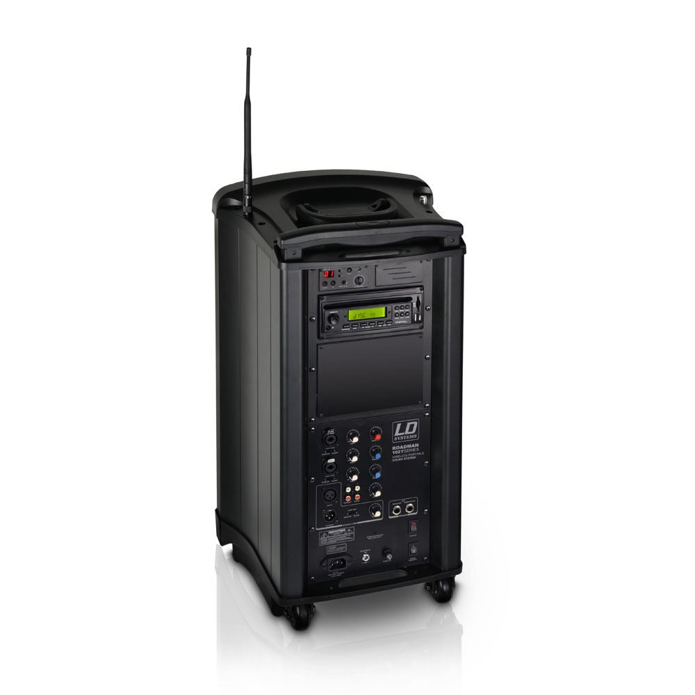 Autres caractéristiques : Récepteur radio supplémentaire (LDRM102R) disponible en option, Fonction Audio-Link, Support pour pied 36 mm, Sac de transport disponible en option, Roulettes de transport, poignée de transport