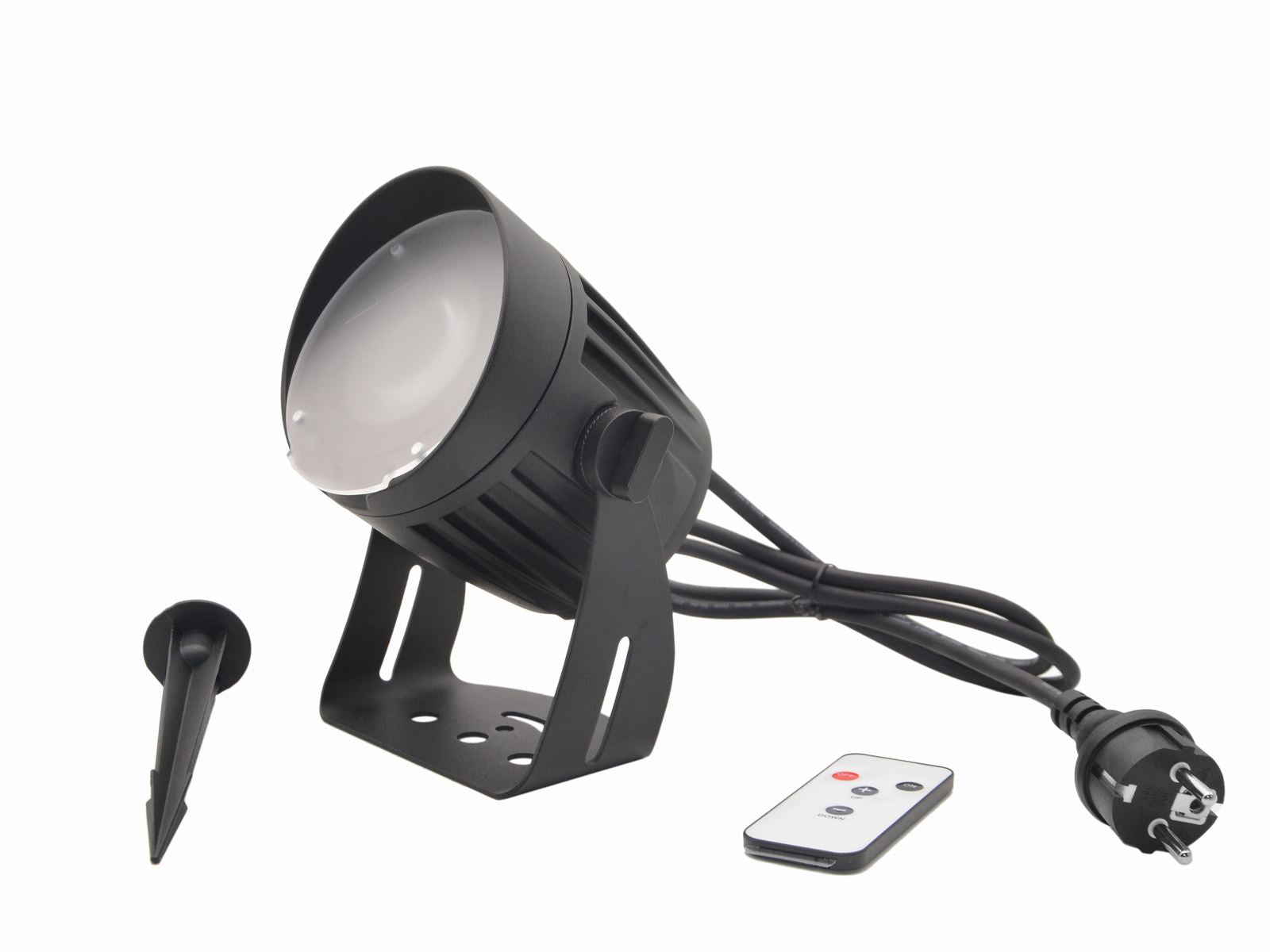 Spot LED résistant aux intempéries (IP65) avec LED 18 W, incl. Télécommande IR, filtre antigel et piquet de terre