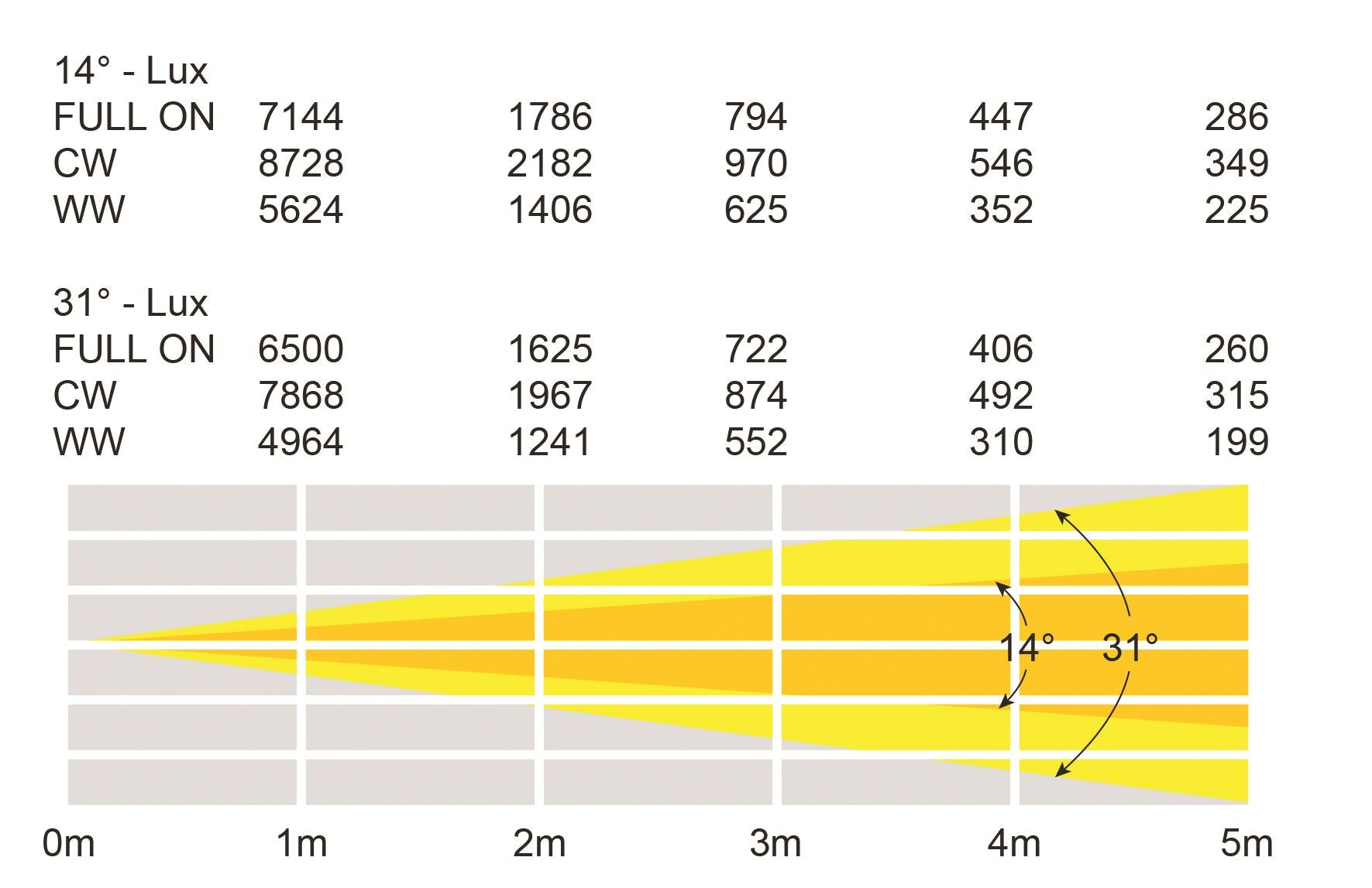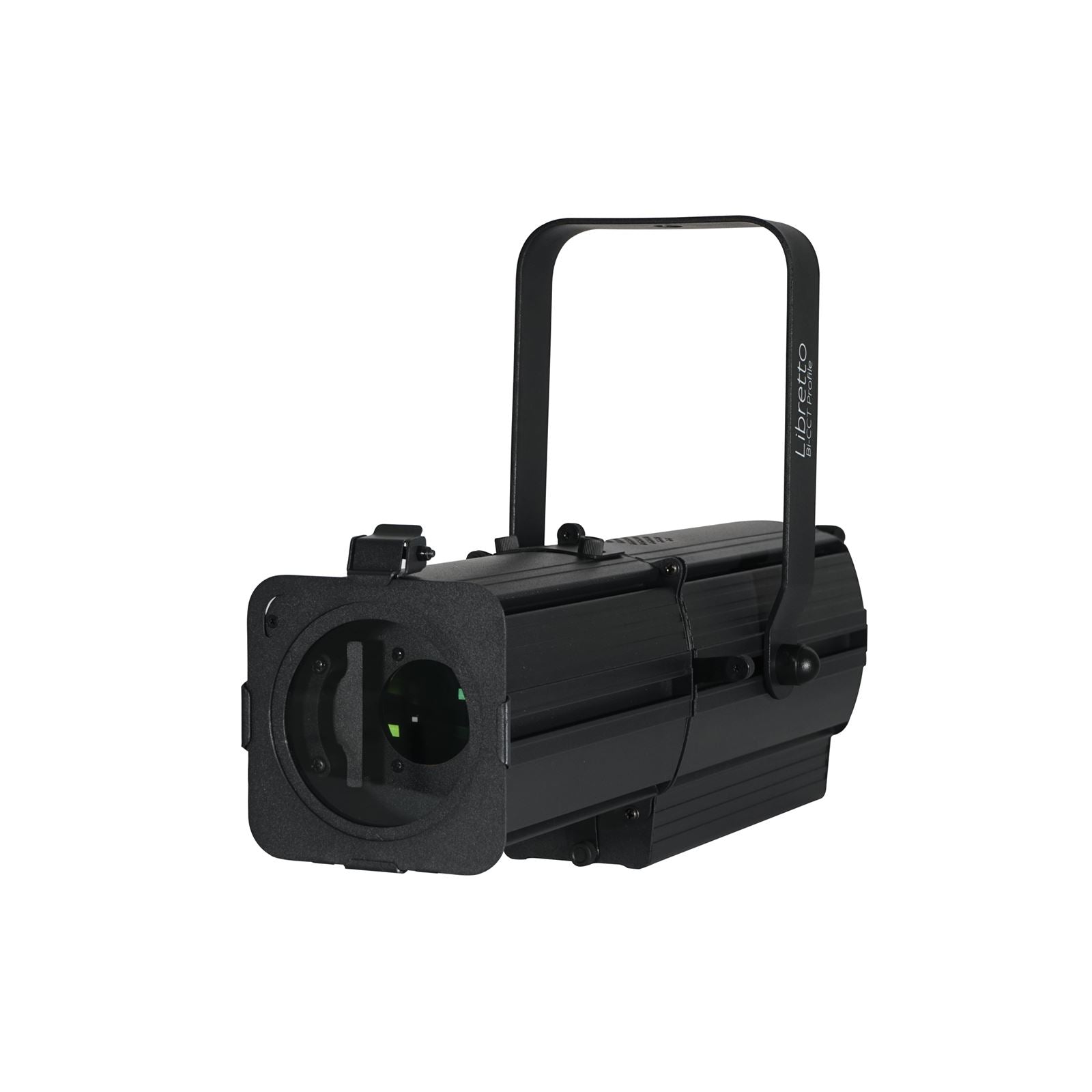 Le Libretto Bi-CCT est un profil LED COB de 50 W qui combine à la fois blanc chaud et blanc froid dans la même puce LED. Idéalement adapté aux applications dans les galeries, les musées et les théâtres, il fonctionne avec une plage de zoom réglable manuellement de 14 à 31 degrés et projette un faisceau précis et focalisé. Le contrôle se fait à la fois via DMX et le menu intégré. La mise en forme du faisceau est possible grâce au système d'obturation à quatre pales et des gobos en métal et en verre peuvent être installés. Cinq gobos métalliques sont inclus avec le luminaire.