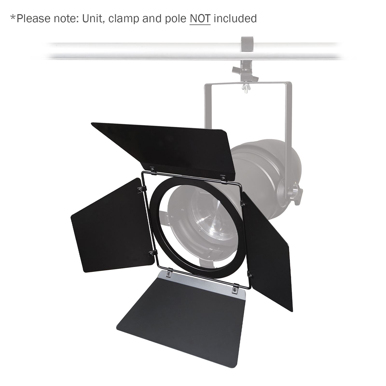 Porte de grange en option à utiliser avec la plupart des canettes Par 64 Flood. La porte peut pivoter à 360 degrés.