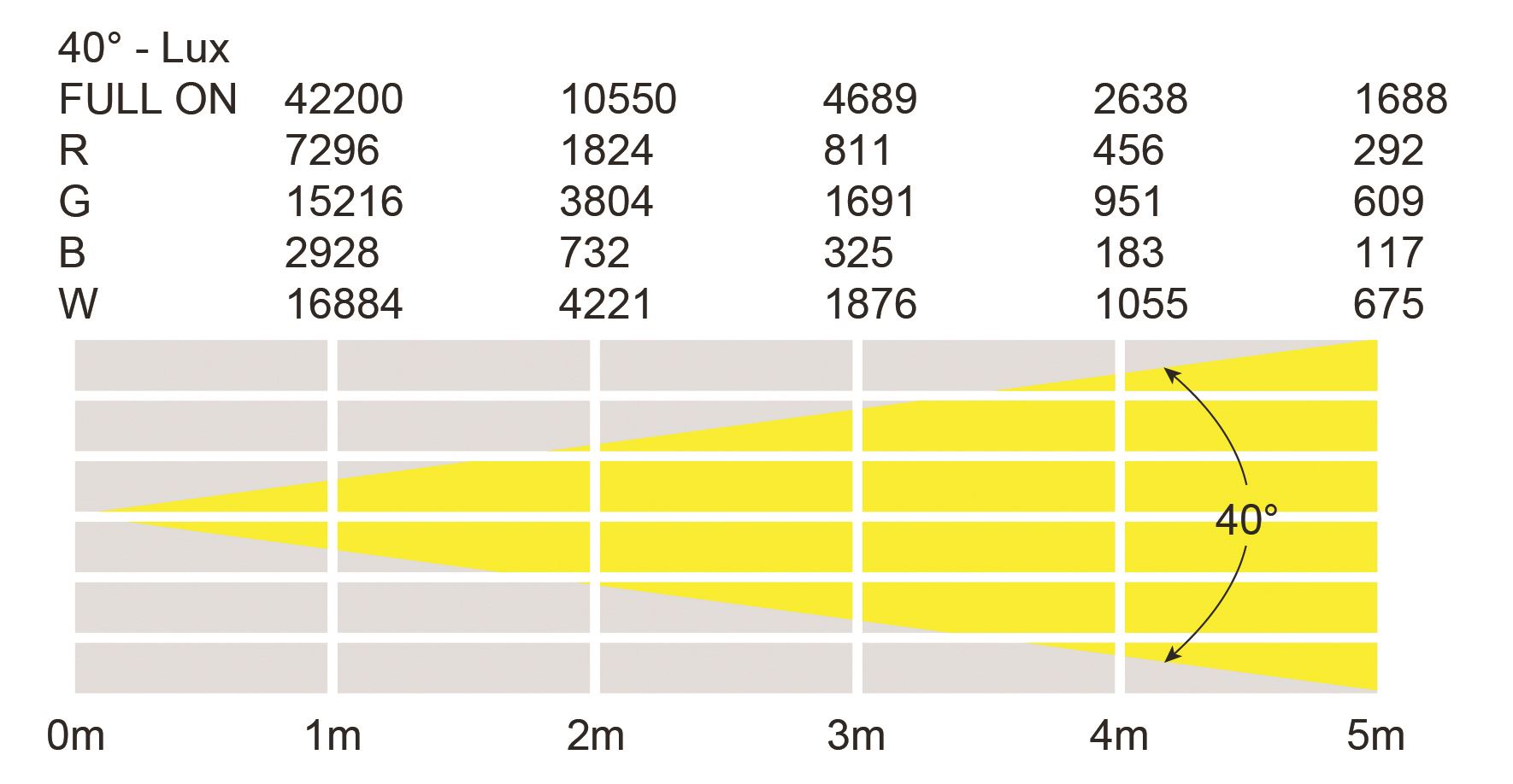 • 40 LED quadricolores de 10 W (RGBW)