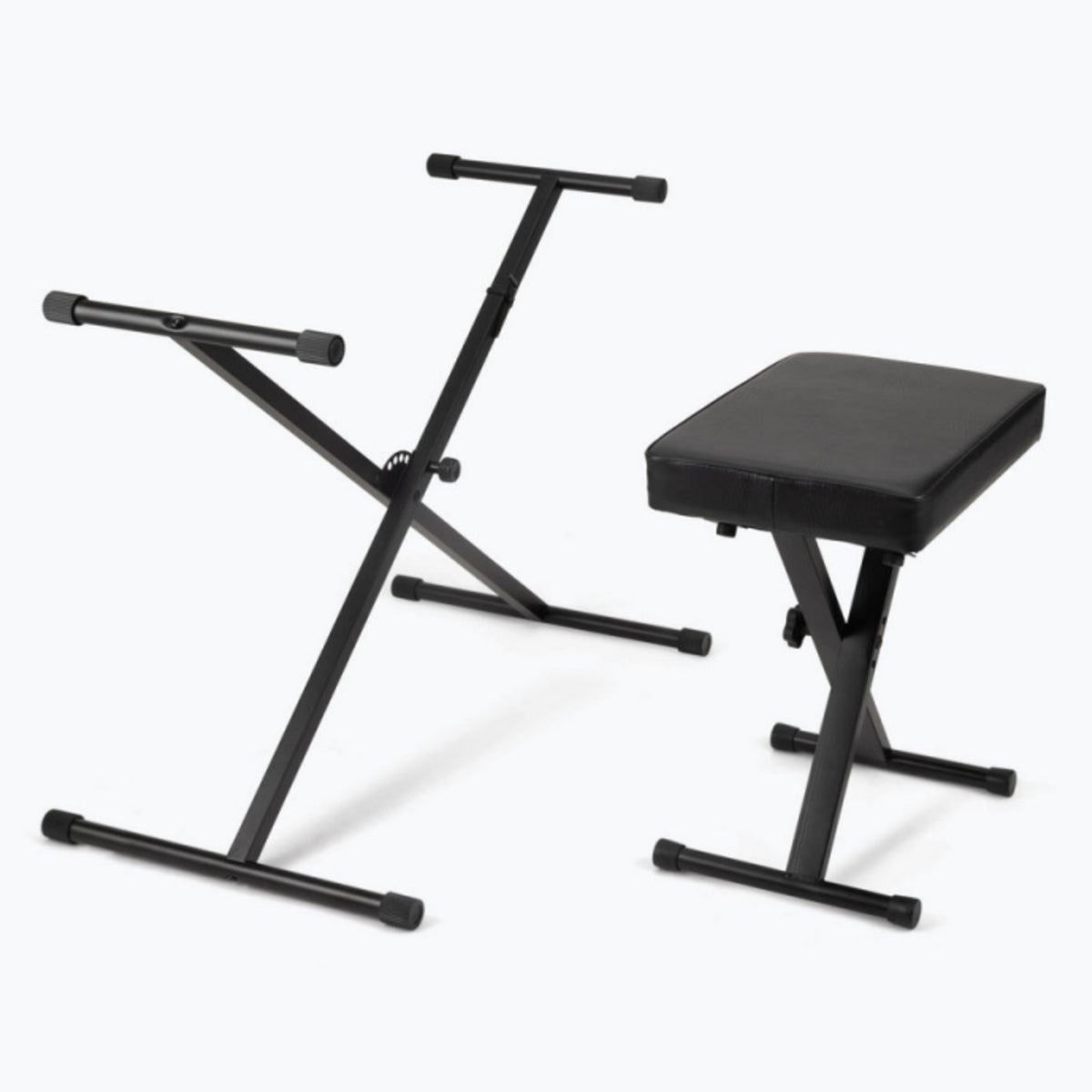 Designed for ergonomic playing, our KT7800 Three-Position X-Style Keyboard/Piano Bench features a soft yet firm seat cushion that delivers outstanding comfort and support. The seat is supported by an exceptionally stable base that adjusts in height to accommodate a variety of playing styles. The base also folds flat for convenient storage and transportation.