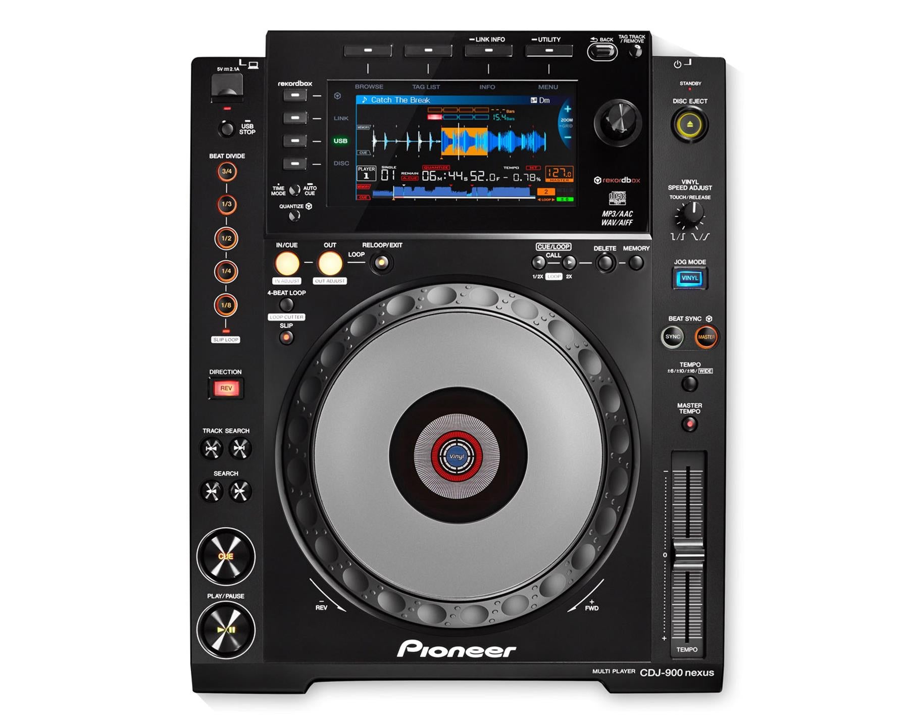 Le CDJ-900NXS s'appuie sur le succès de son prédécesseur, le CDJ-900, et est doté de nouvelles technologies, notamment un écran LCD couleur, Beat Divide, Beat Sync à quatre platines et la possibilité de jouer des sets à partir d'un smartphone.