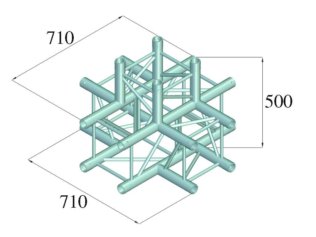 QUADLOCK 6082 Système de ferme à 4 pointsQUADLOCK 6082 est un système de ferme à 4 points en aluminium. Les différents éléments sont reliés par quatre cônes, pivots et broches. QUADLOCK 6082 est fabriqué en alliage EN-AW 6082 T6 (AlMgSi1 T6) pour des charges encore plus élevées. L'avantage du système de connexion conique est que les cônes s'intègrent complètement dans les membrures principales, ce qui garantit une capacité de charge maximale. Le système Quick-Lock permet un assemblage rapide, efficace et très esthétique lorsque les constructions en treillis sont fréquemment assemblées et démontées. Les quatre membrures principales sont constituées d'un tube en aluminium de 50 mm avec une épaisseur de paroi de 2 mm et offrent un bon rapport entre résistance et poids. Les renforts ont un diamètre de 16 mm avec une épaisseur de paroi de 2 mm et laissent suffisamment d'espace pour installer des coupleurs, des crochets et des pinces. Avec des dimensions extérieures de 290 mm, QUADLOCK QQTR est un système de fermes stables pour des charges plus élevées et une durabilité prolongée. Ce système est principalement conçu pour une utilisation intense dans les installations scéniques, les installations de foires, les installations événementielles mais aussi pour les installations permanentes dans les discothèques et les théâtres. Sa surface polie fait de ce système universel un véritable accroche-regard. Grâce à sa large gamme de longueurs de système standard, de coins et d'accessoires, ce système est très polyvalent et offre des possibilités de conception illimitées. La production de ce système de fermes est contrôlée par le TUV. Le tableau de charges servant de base de calcul peut être téléchargé sur Internet avant d'acheter le produit ! Attention : ce système de fermes ne doit jamais être combiné avec d'autres systèmes !