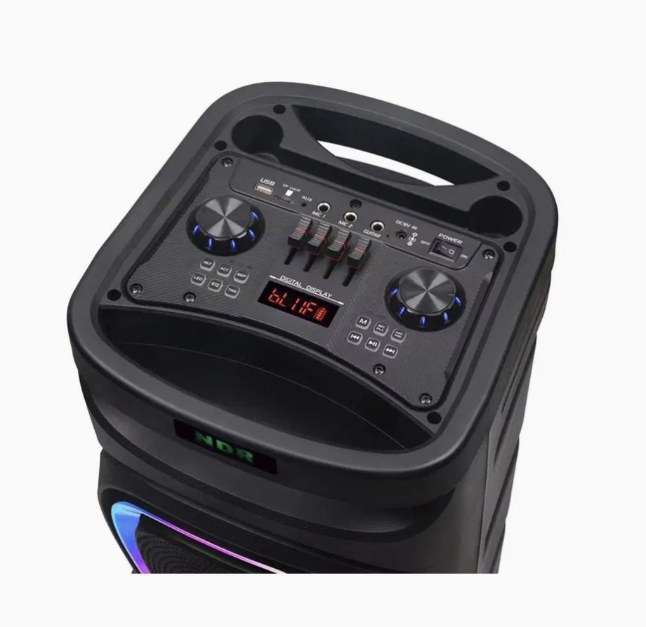 The Wireless Speaker X920 delivers high-quality, powerful sound with its dual 10-inch bass units and coil tweeter for crystal-clear audio. Designed for parties, karaoke, and events, it comes equipped with dual wireless microphones, a large remote control, and a 9V/2A charger for convenience. The built-in 7.4V/6000mAh rechargeable battery ensures extended playtime, making it perfect for both indoor and outdoor use. With multiple input options including Bluetooth, USB, TF card, FM radio, and TWS connectivity, this versatile speaker gives you complete freedom to enjoy music your way.