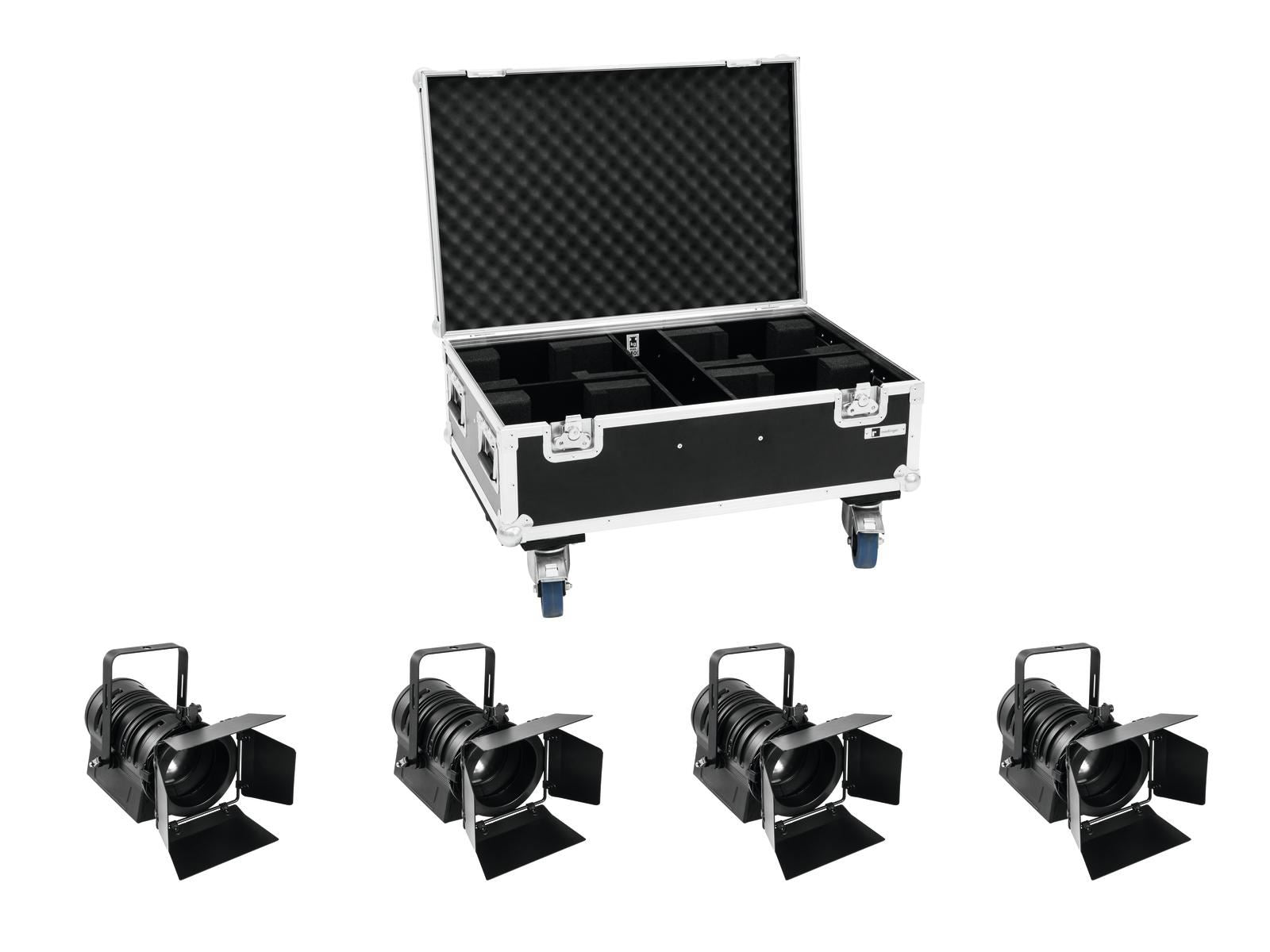 4x PC spots with 60 W COB LED including PRO flightcase with wheels
