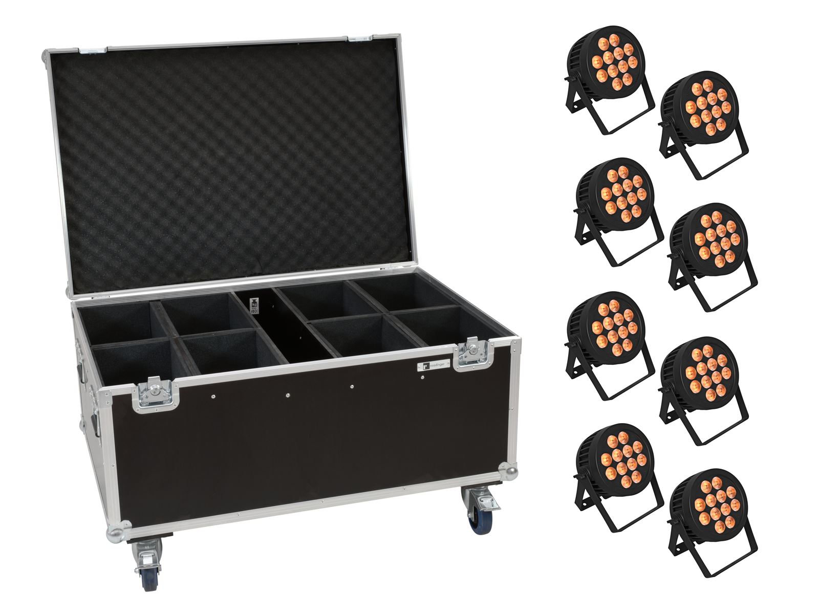ROADINGER Flightcase 8x LED IP PAR 12x8W QCL/12x9 SQL Spot avec roulettes
