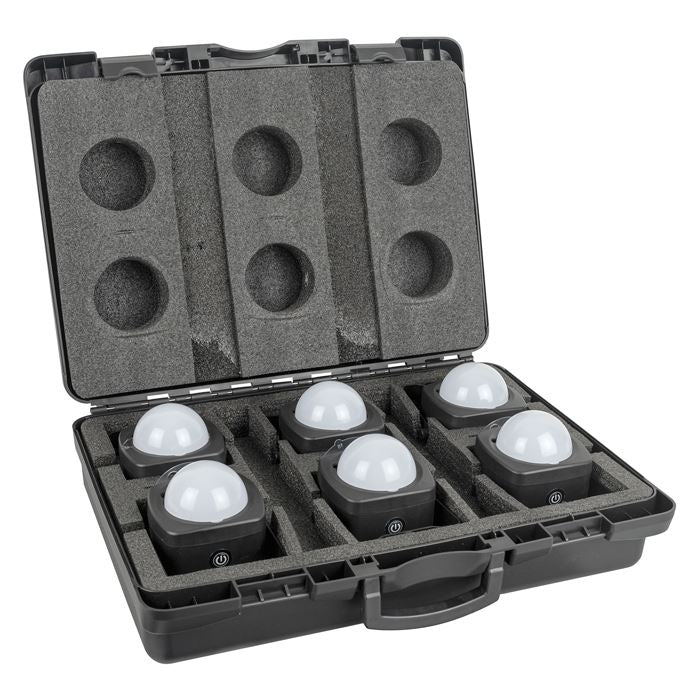 Mallette dédiée en plastique dur pour 6 pièces Showtec Event Dot 15. L'intérieur en mousse préformée offre une protection suffisante pour les déplacements sur route pour 6 unités avec un peu d'espace libre pour les accessoires.