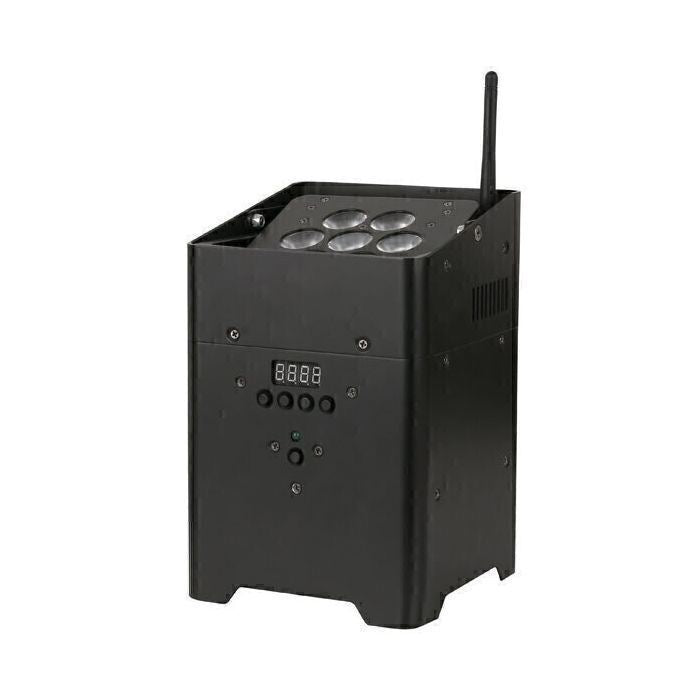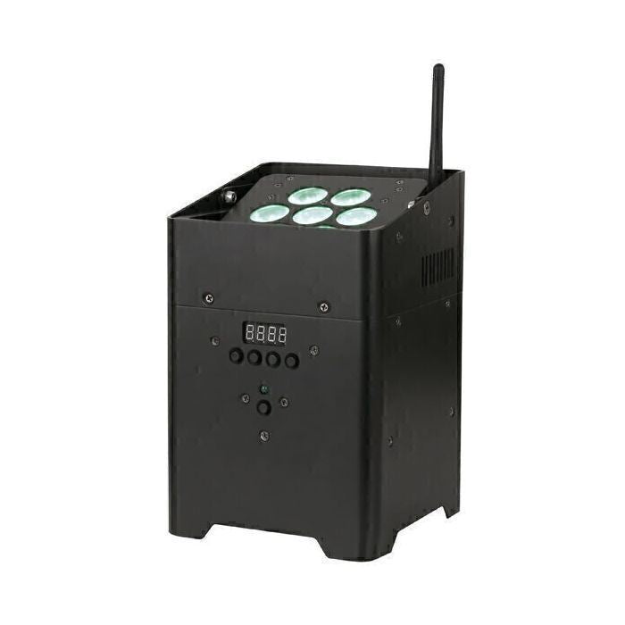 Grâce à sa batterie intégrée et à son module DMX sans fil (de Wireless Solutions), vous n'avez besoin d'aucun câble. Il est équipé d'un système de chargeur intégré et la batterie durera au moins 6 heures lorsqu'elle est complètement chargée. La plaque Lens peut être inclinée à 30°, ce qui est utile pour éclairer un mur. L'EventLITE 7/4i est compact, facile à transporter et léger. Il comprend des programmes automatisés et activés par le son, peut être connecté en série en mode maître-esclave (DMX filaire) et peut être personnalisé manuellement, à l'aide d'une télécommande IR en option ou d'un DMX (sans fil). Une housse de pluie est disponible pour une utilisation en extérieur.