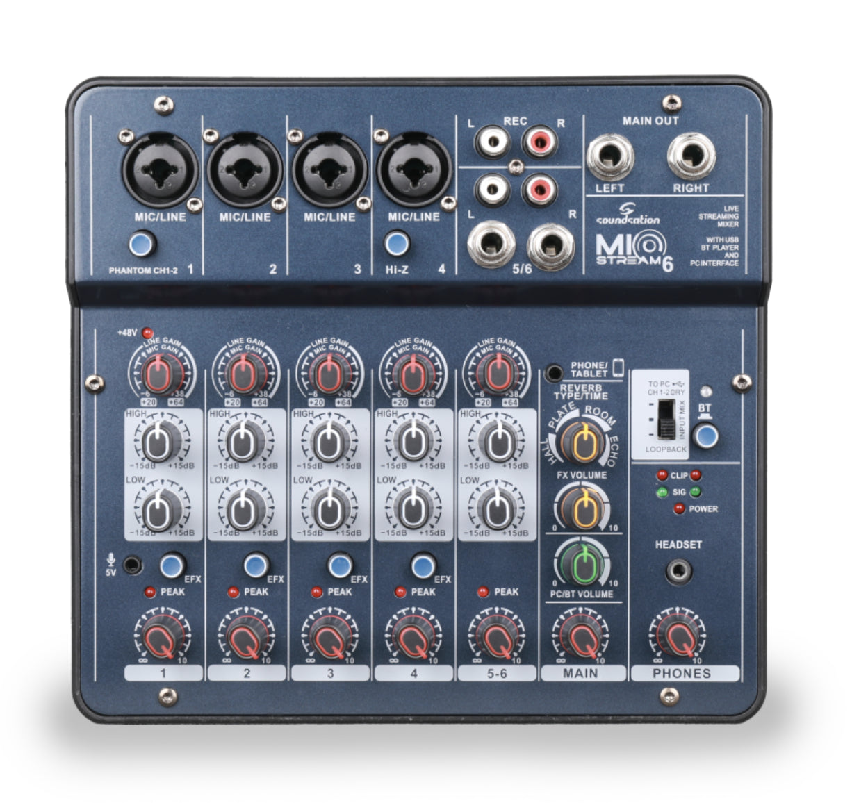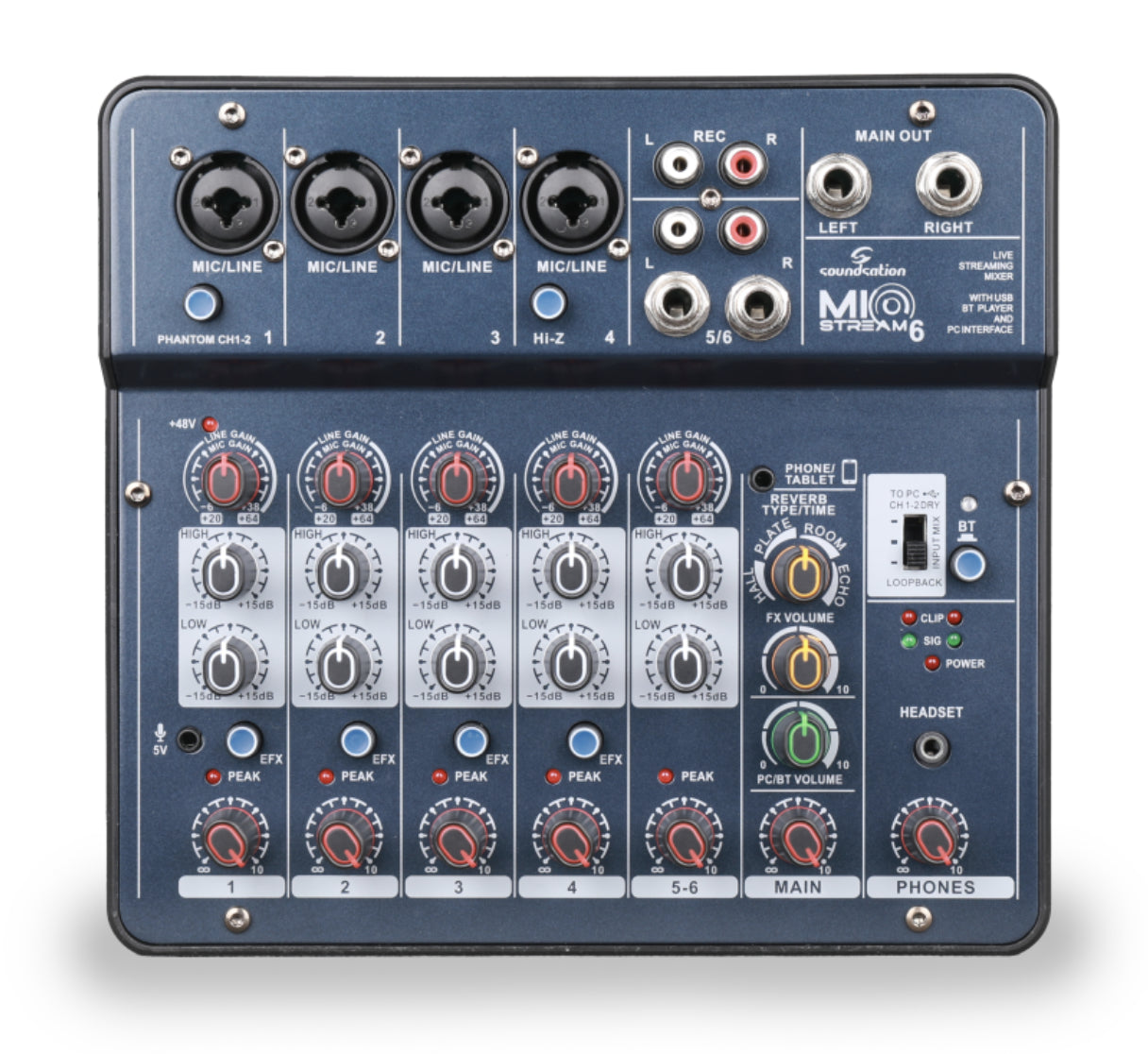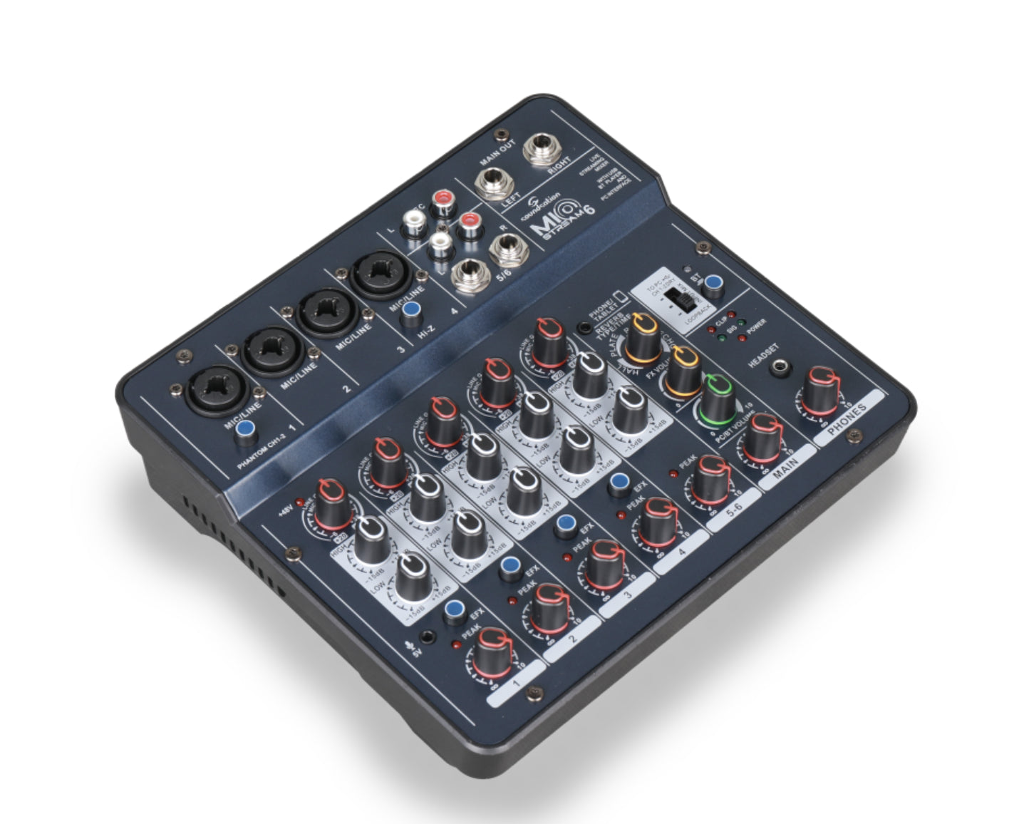 Most tiny mixers include basic effects just to check a box, but not MioStream. This ultra-portable mixer features a true digital FX engine with 4 creative presets: Hall, Plate, Room, and Echo. Each preset lets you adjust key parameters such as reverb decay or delay time, with a dedicated level knob for precise control. Whether you're adding space to vocals or depth to instruments, these effects are designed to sound great and be used, not ignored. MioStream mixers are a true tech powerhouse for web streaming, content creation, demos, and more.