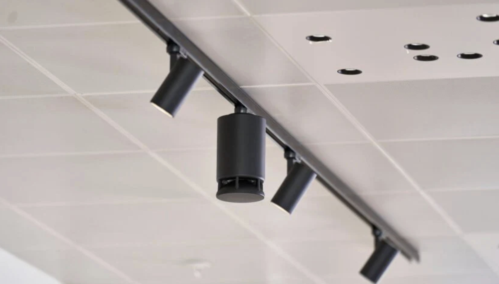 The Spottune OMNI Track is a wireless, omnidirectional speaker designed for seamless integration into standard 3-phase track lighting systems, making it ideal for retail and commercial environments.