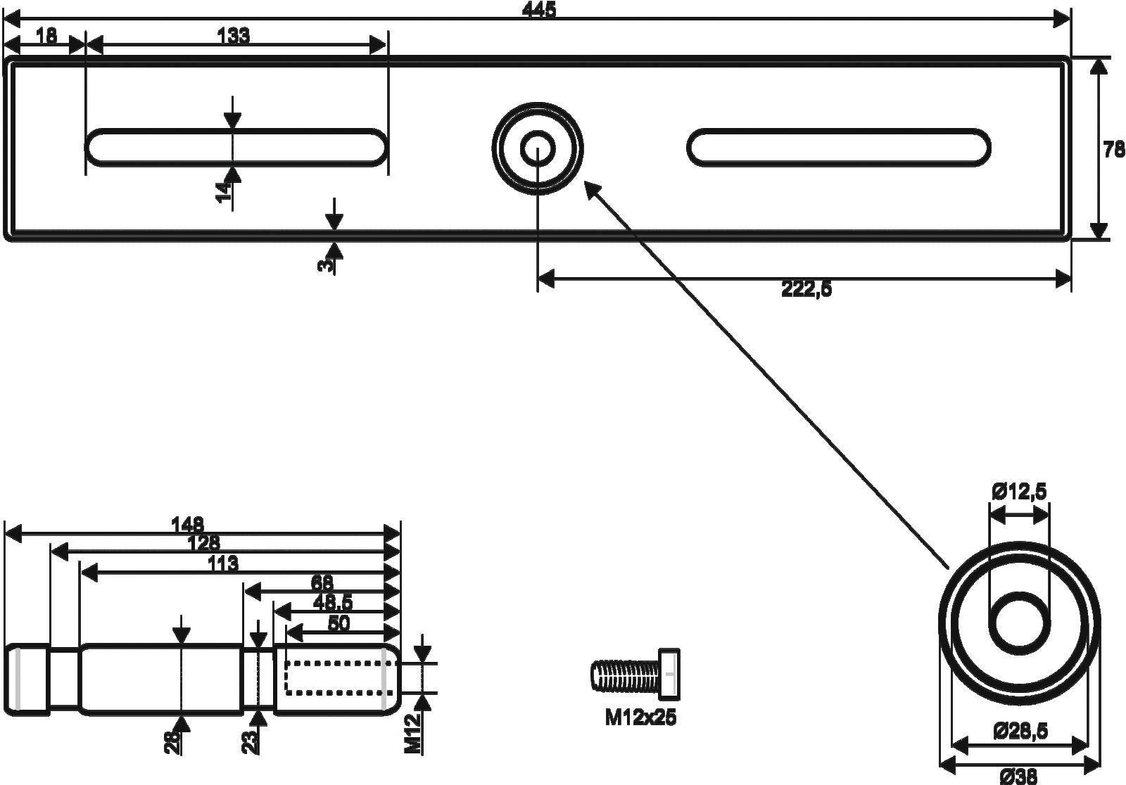 Adaptateur horizontal avec broche TV de 160 à 405 mm, max. charge CMU 180 kg