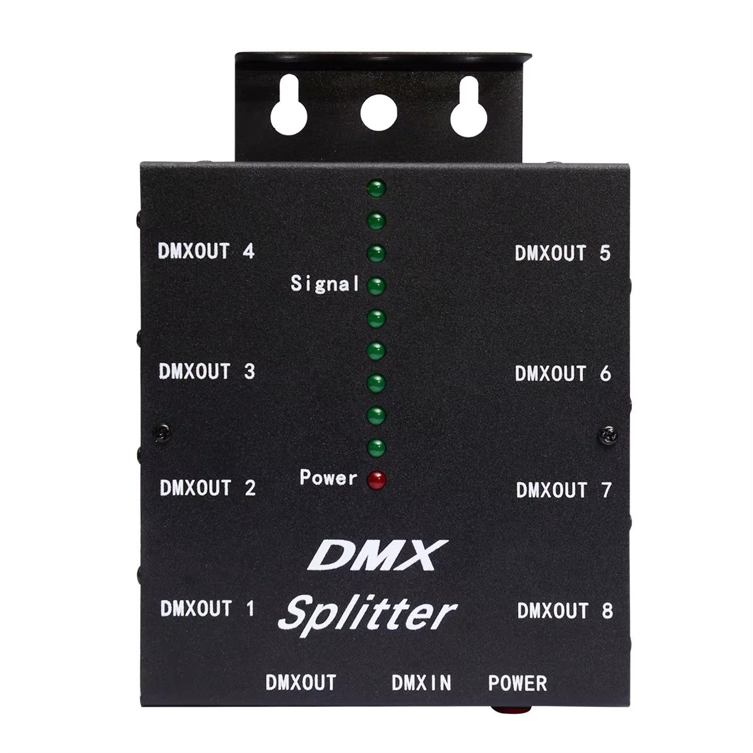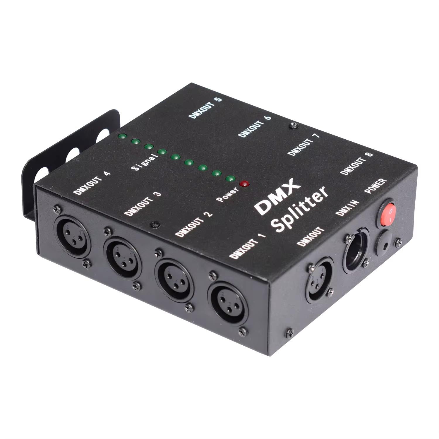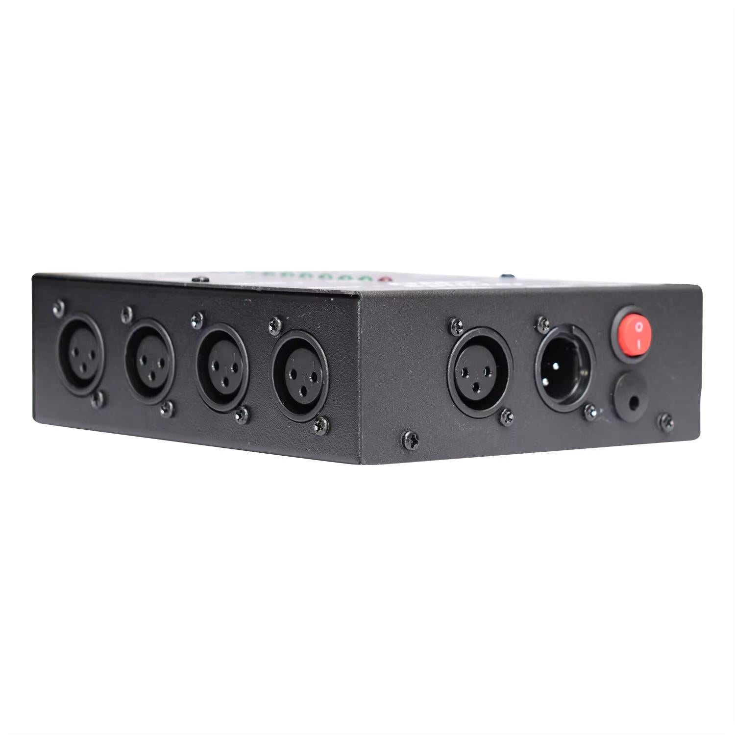 This DMX512 optical splitter functions as DMX512 distribution amplifier and booster. It is specially designed for connection of DMX512 receivers like dimmers, par lights, moving lights, etc. in star configuration It amplifies the DMX512 signal, making the DMX512 data transmission more reliable. With 1000V isolation between input and output and between any individual outputs, each interface also has over-current protection, so all of these will maximize the protection of your console and lighting.