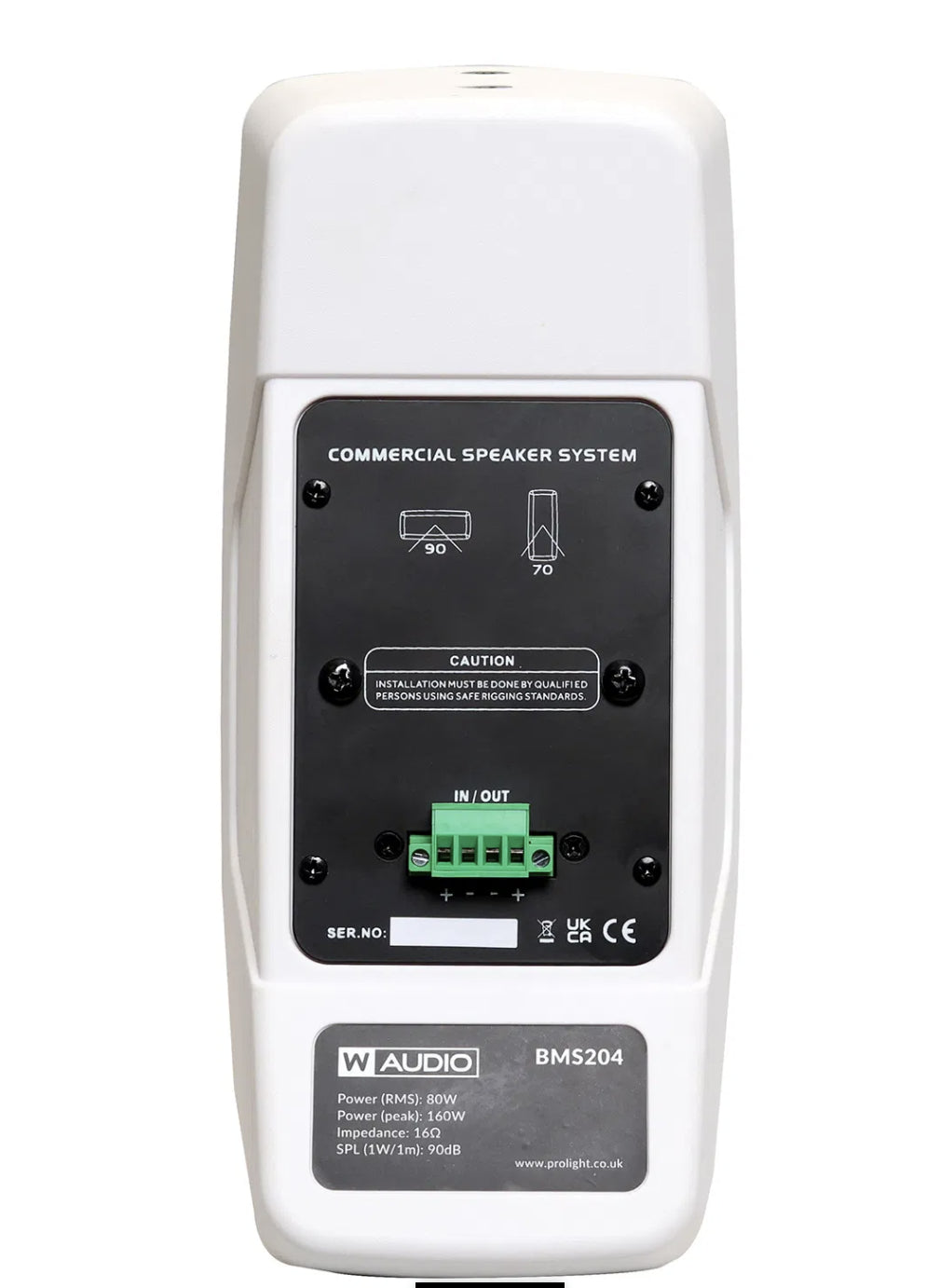 The W Audio BMS204 Series is a versatile speaker range designed for commercial audio installations, available in both low impedance and 100V line versions. Featuring dual 4” mid/low-frequency drivers and a ¾” high-frequency horn, these speakers deliver clear, natural sound reproduction for both music and speech, maintaining a flat frequency response.
