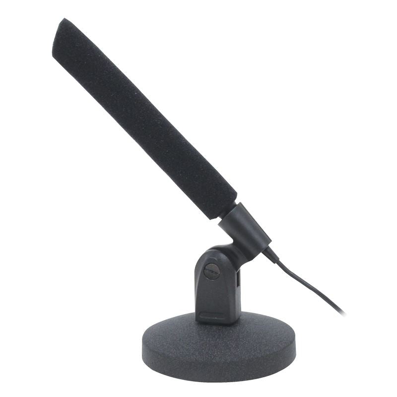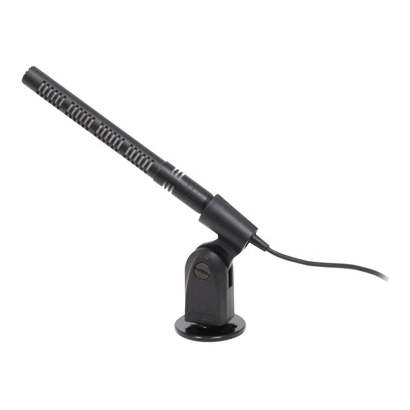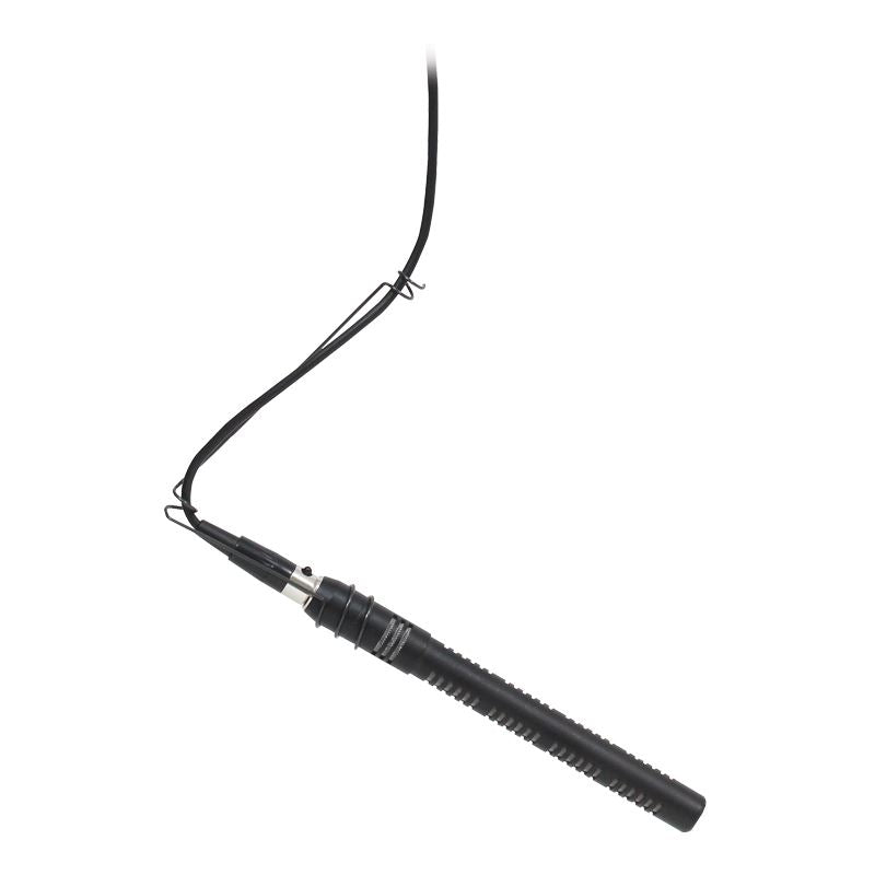 Un microphone miniature polyvalent de style fusil, fourni avec une sélection de matériel de montage permettant à l'installateur d'utiliser le microphone soit en hauteur, soit sur un bureau, soit sur un pupitre. Fourni avec un fil de suspension coudé, une base de bureau moulée sous pression et un support de bride d'installation fixe et fileté.