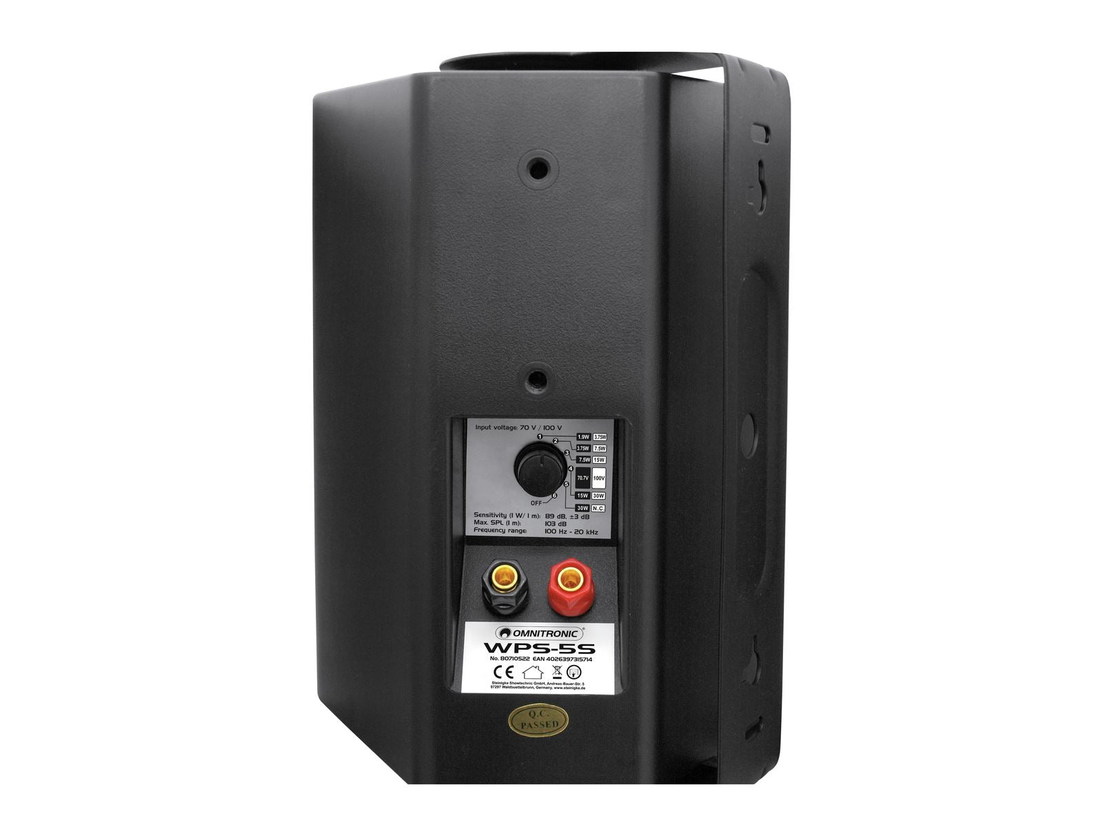 La série WPS d'OMNITRONIC convainc par son ensemble bien pensé : outre son look indéniablement soigné, le son ainsi que les fonctions se situent à un niveau élevé. Les systèmes à 2 voies, comme le WPS-5S, sont équipés d'un potentiomètre multi-étapes, d'un corps en plastique ABS avec une protection de sécurité en métal et d'un support de montage pivotant. Grâce à la construction trapézoïdale, le montage dans les coins est aussi simple que tout.