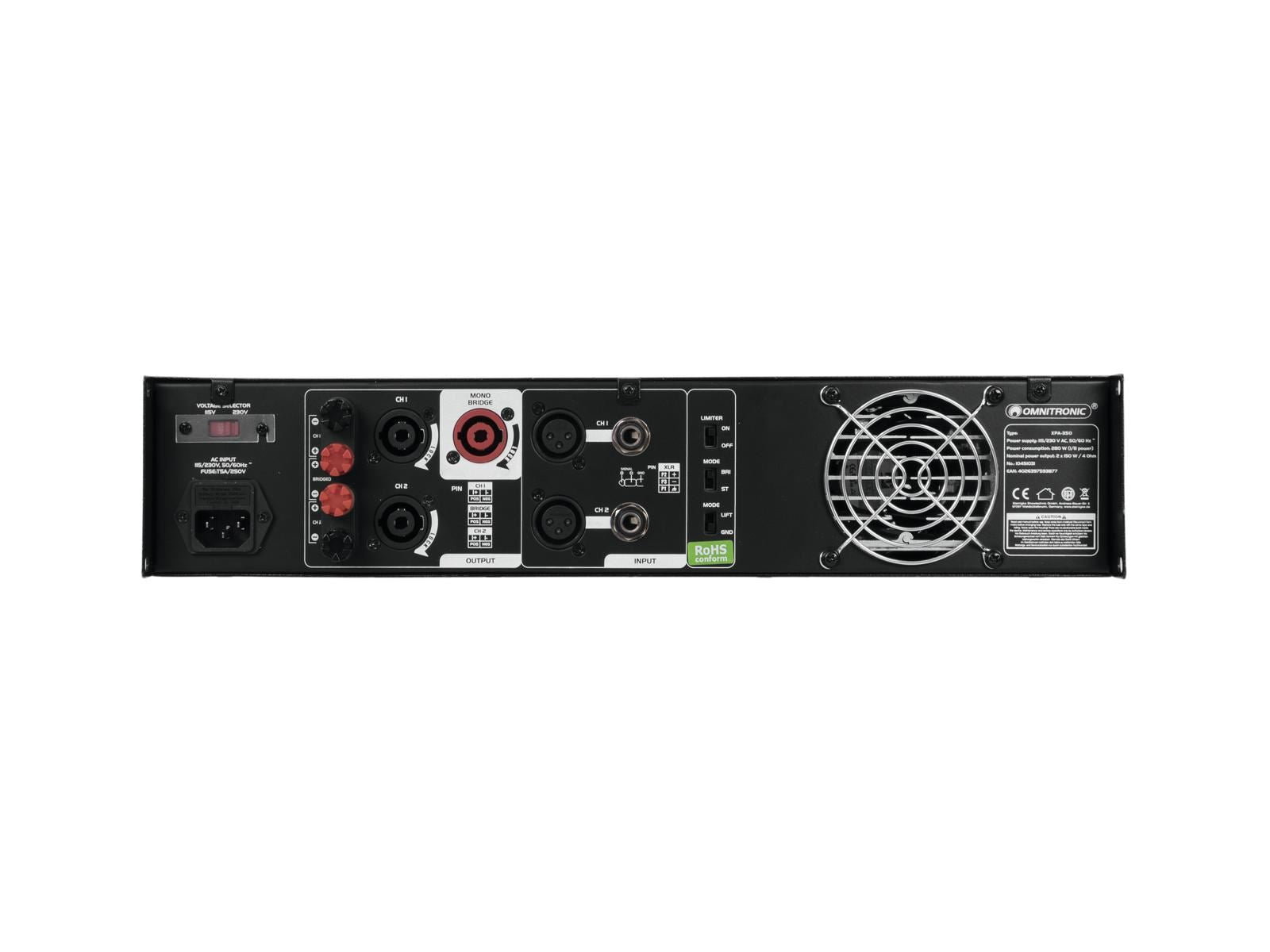 Amplificateur de sonorisation avec limiteur, 2 x 175 W / 4 ohms, 2 x 130 W / 8 ohms