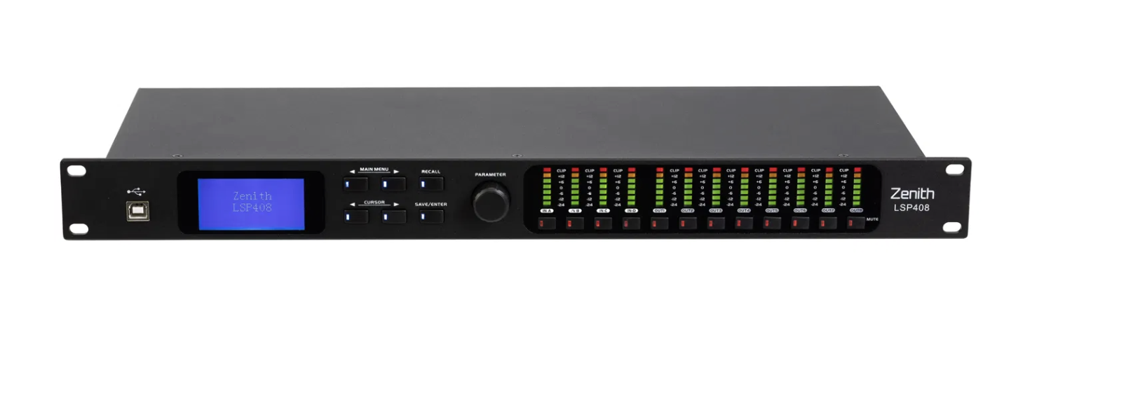 Built around a powerful processor core, the Zenith LSP loudspeaker management systems offer a wide variety of features allowing the sound technician to adjust delay, dynamics, routing, crossover and EQ either from the easy to use interface on the front panel or via the Windows based PC editing suite. The processor is pre-loaded with a range of standard presets for basic systems including 2-way stereo, each of these maybe copied, edited and saved into user presets, or alternatively the sound technician may create and store their own. The user may backup or duplicate presets via the PC editing suite.