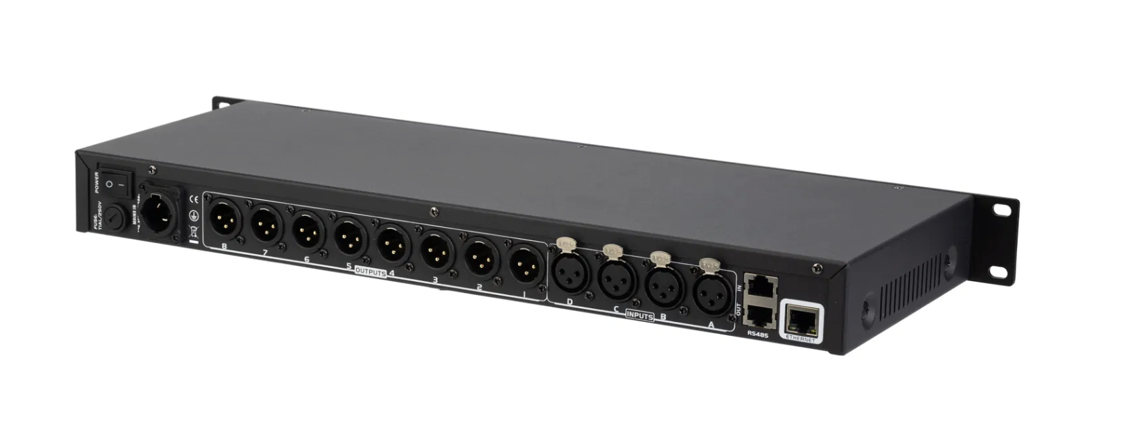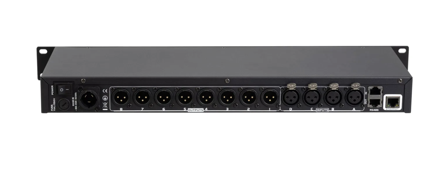 4 XLR inputs, 8 XLR outputs