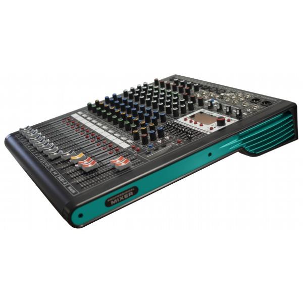 Mélangeurs PROFESSIONNELS avec multi-effets DSP et Bluetooth. La solution idéale pour tout garder sous contrôle. Aussi parfaits pour les installations fixes que polyvalents pour les applications mobiles, ils peuvent facilement gérer les microphones pour une représentation théâtrale ou les entrées pour un concert d'un groupe. Les 2 sorties AUX garantissent une excellente autonomie pour les performances live mais également pour connecter des hors-bord en studio. Effets internes, connexion Bluetooth, carte son intégrée et lecteur mp3 complètent la gamme de fonctionnalités de ces tables de mixage puissantes et polyvalentes. Table de mixage analogique compacte avec DSP 32 bits intégré et carte son full duplex, 99 effets, connectivité Bluetooth et lecteur multimédia. 4 groupes de sorties auxiliaires sélectionnables indépendamment, avec sélecteur matriciel. EQ 9 bandes sur le master. Alimentation fantôme +48 V
