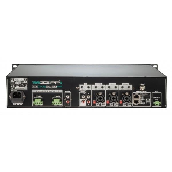 Sorties haut-parleurs : 2 zones de sortie indépendantes, 100 V ou 70 V et 4 Ohm-8 Ohm-16 Ohm