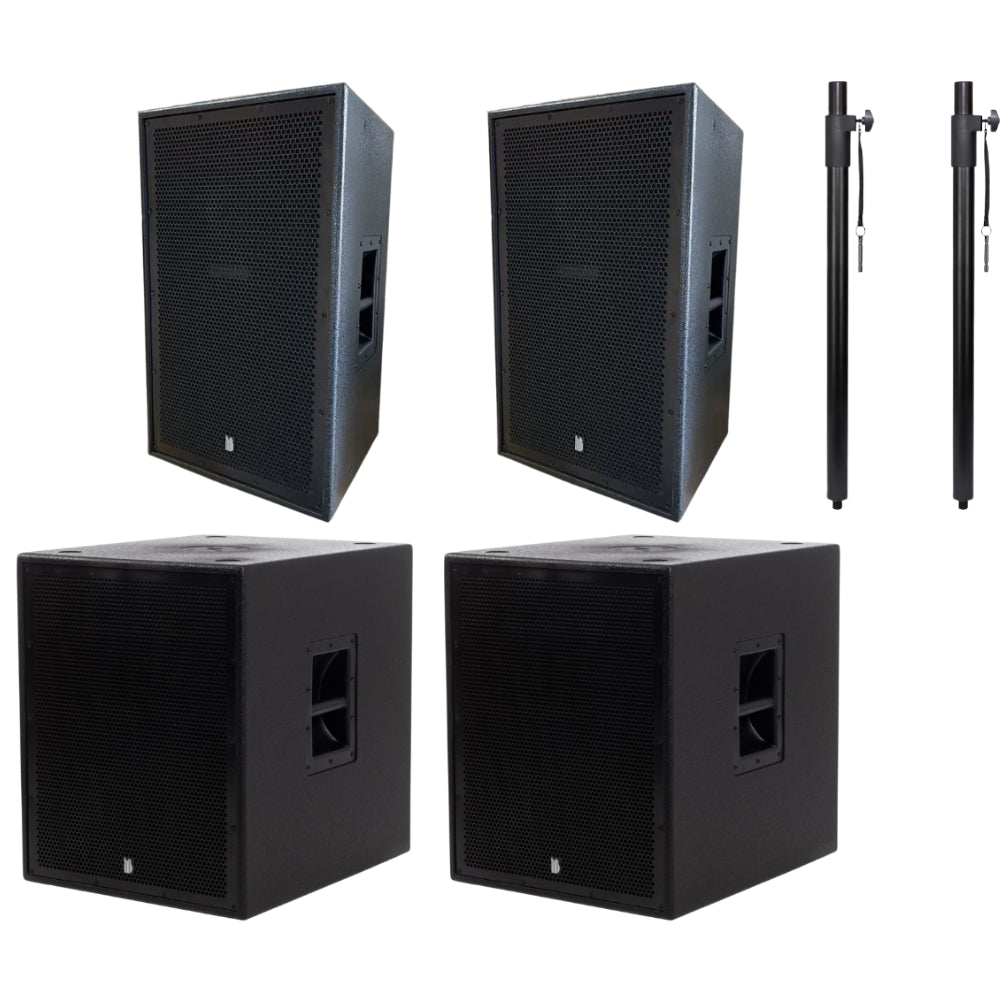 2x BishopSound Delta Plywood 12" Trapezoidal 500w Speaker RMS and Delta 15" Birch Plywood Passive Subwoofer 600w RMS