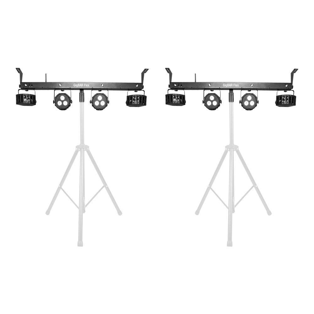 GigBAR Flex is an ultra-convenient 3-in-1 Pack-n-Go lighting system with a pair of LED Derbys, LED Quad-color pars (RGB + UV for increased colour mixing and effects) and strobes. A pass-through mounting hole for flexible mounting options with various stage and speaker stands and adjustable leg brackets adds versatility.
