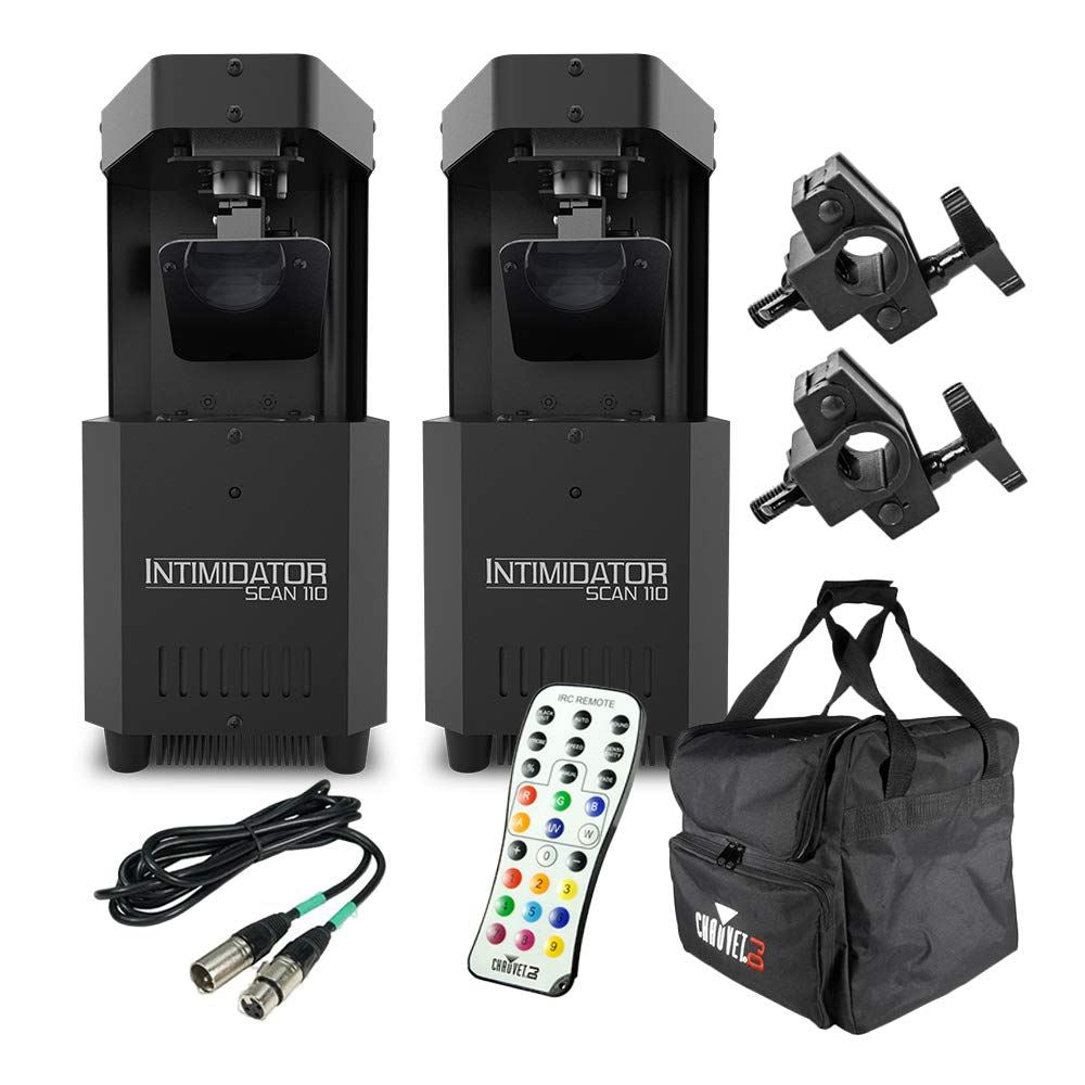 This bundle includes; 2x Chauvet DJ Intimidator Scan 110 Lights, 1x 25FT DMX Connecting Cable, 2x Universal O-Clamps with Snug Fit Grip, 1x Protective Transport Case. 1x Chauvet DJ IRC 6 Wireless Remote.