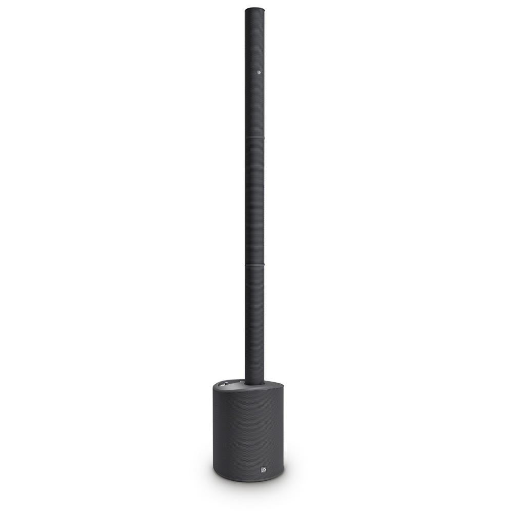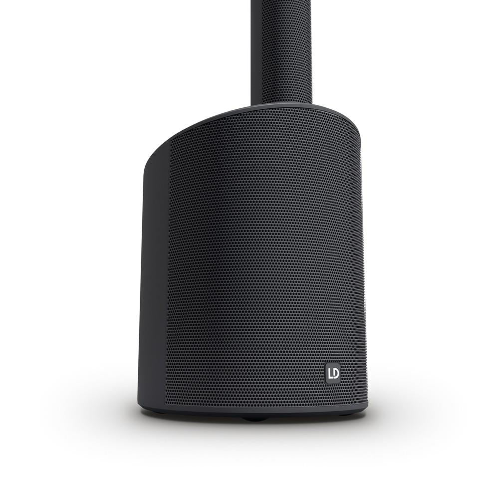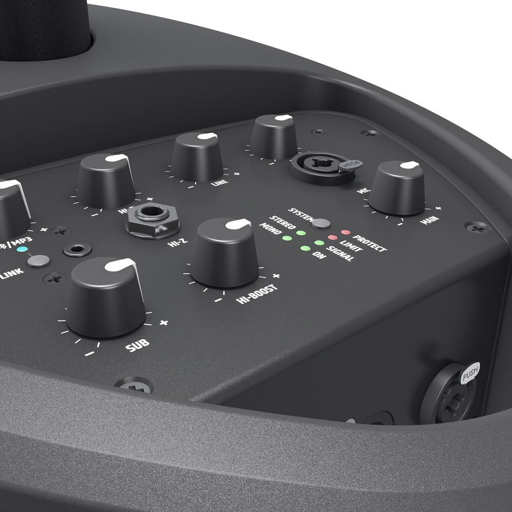 For unparalleled sound quality in all applications, the column system features LD Systems' LECC DSP with multi-band limiter, equalizer, compressor and crossover. The integrated 4-channel mixer provides separate volume controls for the input channels, sum and subwoofer as well as a variable high-frequency boost to facilitate fast and balanced adjustment to the sound. LD Systems’ Quick-Swap Technology® also facilitates immediate and simple battery replacement for practically unrestricted operating times for the MAUI® 5 GO 100.