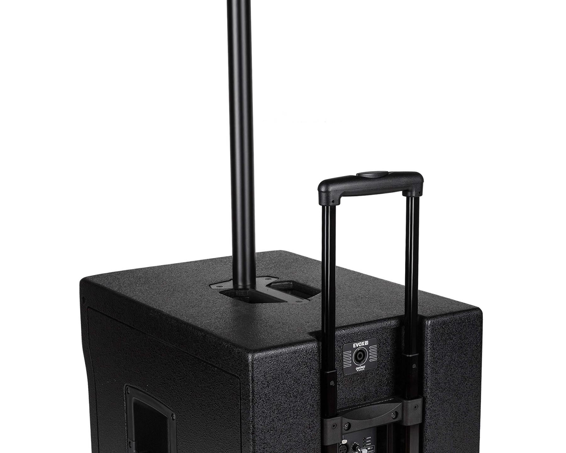 PORTABILITY With 3 simple steps, the EVOX 12 system is all set and ready to play! EVOX 12 system is designed to be easily transported and quickly set up. All the components – top column, sub, pole and cables –come in one package and fit in the optional transportation covers..