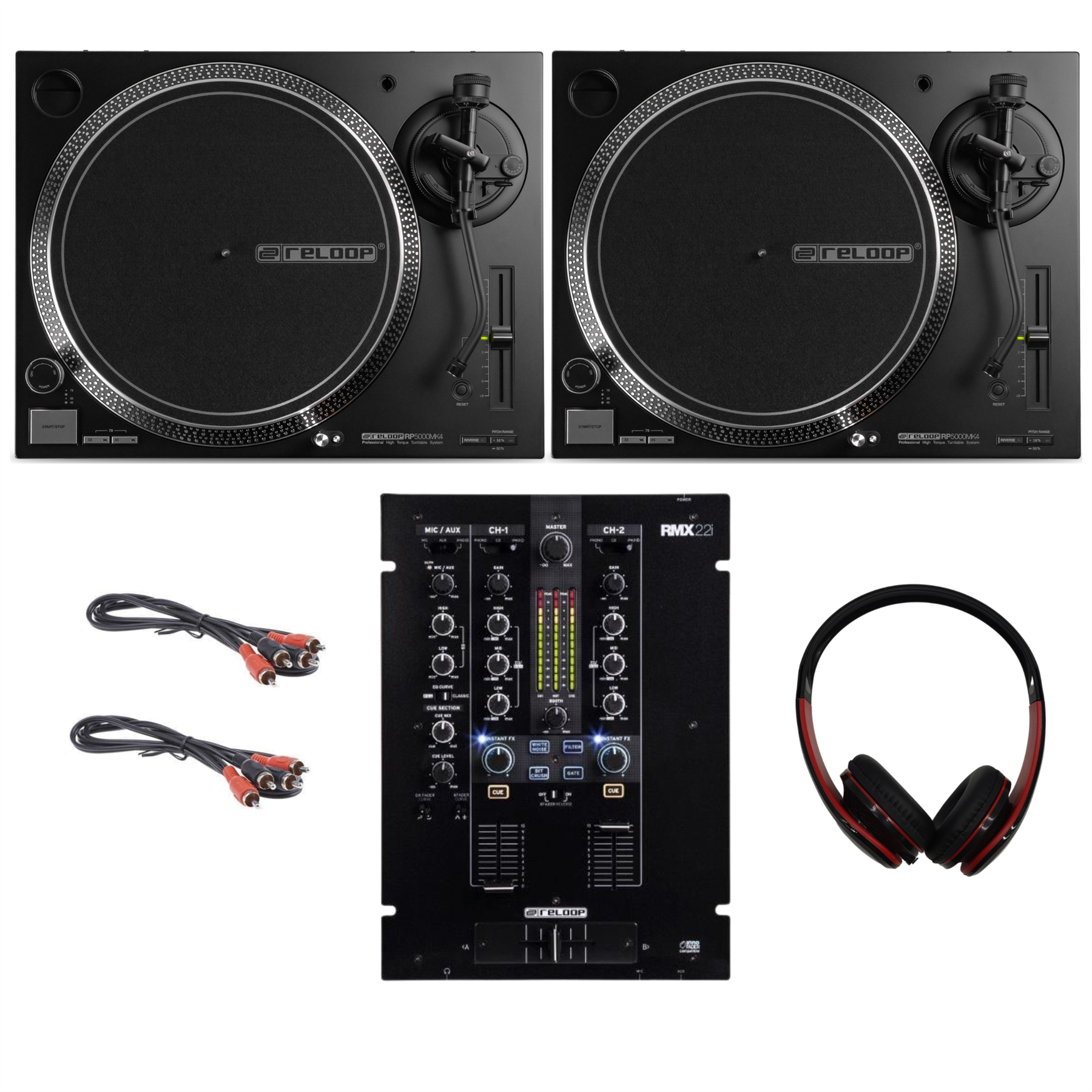 2x Reloop RP-5000 MK4 inc RMX-22i Mixer DJ Bundle