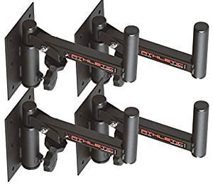 A professional, wall-mounted speaker stand with horizontal and vertical adjustment.