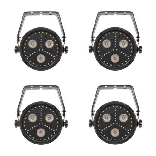 This effect par combines multiple technologies into a single, compact lightweight housing. The three 8W RGB+UV LEDs, a tri formation of RGB SMD LEDs and a ring of white strobe SMD LEDs create a stunning effect. The on-board menu system offers control in auto, sound activation, master/slave and DMX modes and the included IR remote allows each effect to be used independently or multiple effects to be combined.