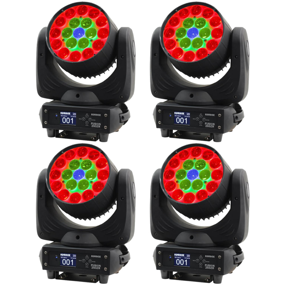 This bundle includes 4x Equinox Fusion 260ZR moving head lights.