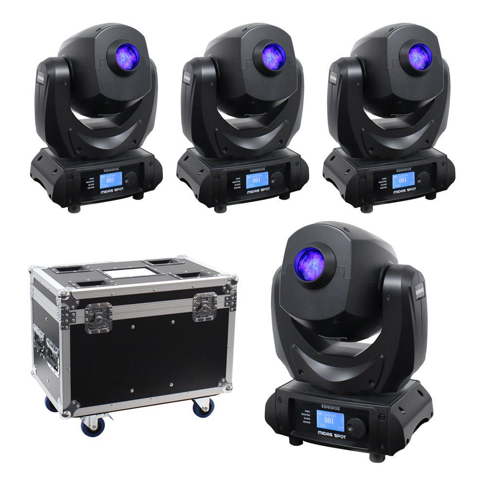 This bundle includes 4x Equinox Midas Spot Moving Heads and 1x Equinox Flightcase.