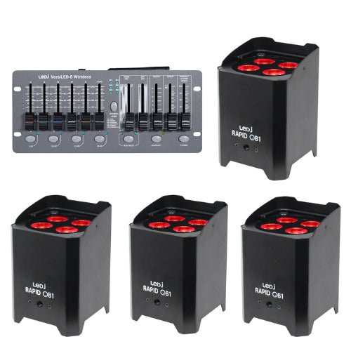 Bundle consists of 4x LEDJ QB1 Hex Uplighter and LEDJ WDMX Controller