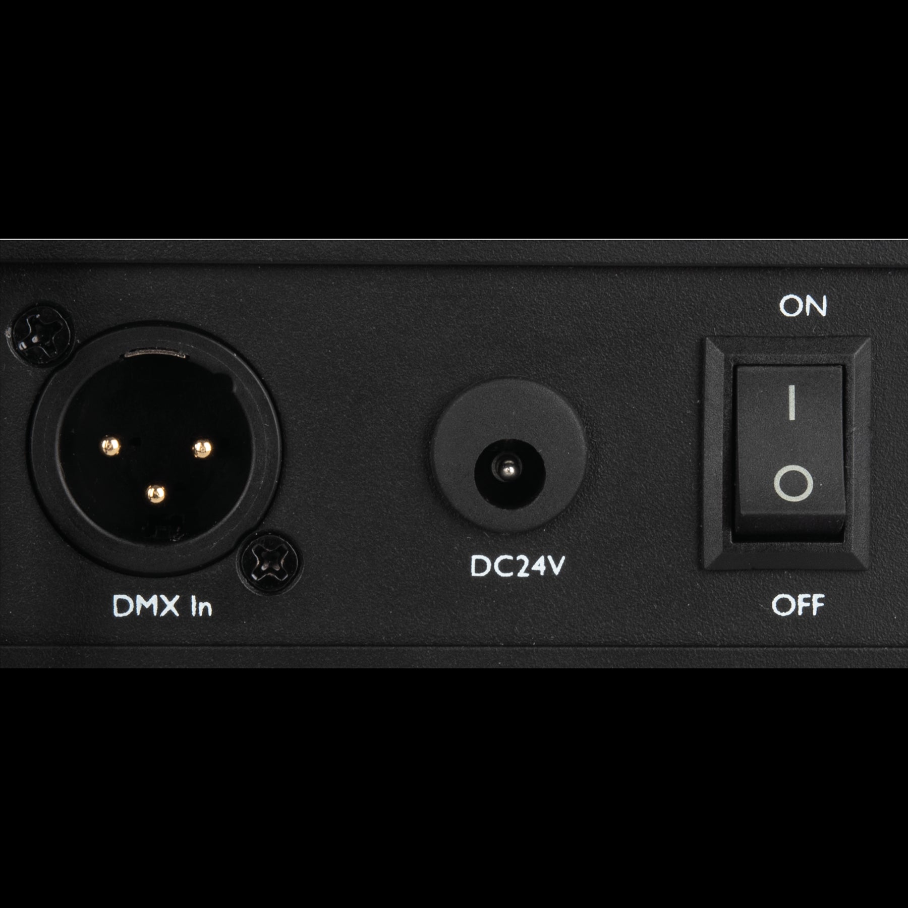 Sturdy black aluminium housing with DMX in/out and low-voltage power input