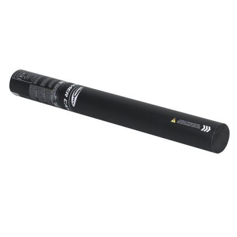 The Showtec handheld confetti cannon is a single use cannon, prefilled with confetti or streamers. To fire the cannon, twist the bottom to the left. The bottom part of the cannon contains a pressurized nitrogen cartridge for a powerful effect.